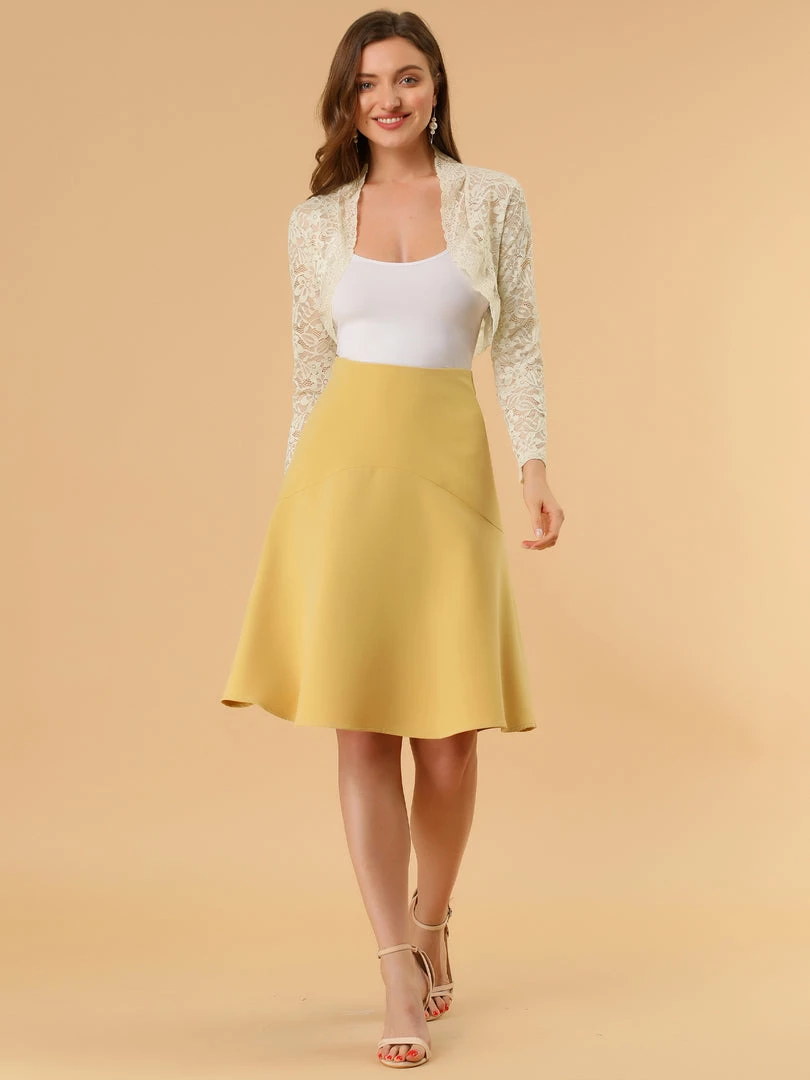 - Opt for the delicate texture of lace with this elegant Lace shrug top from Allegra K. It’s designed with floral lace and an open front design for a comfortable fit.