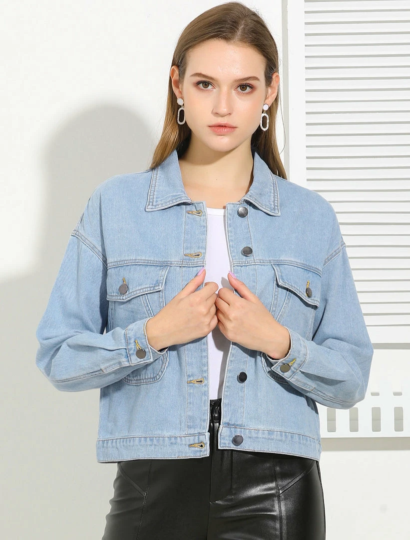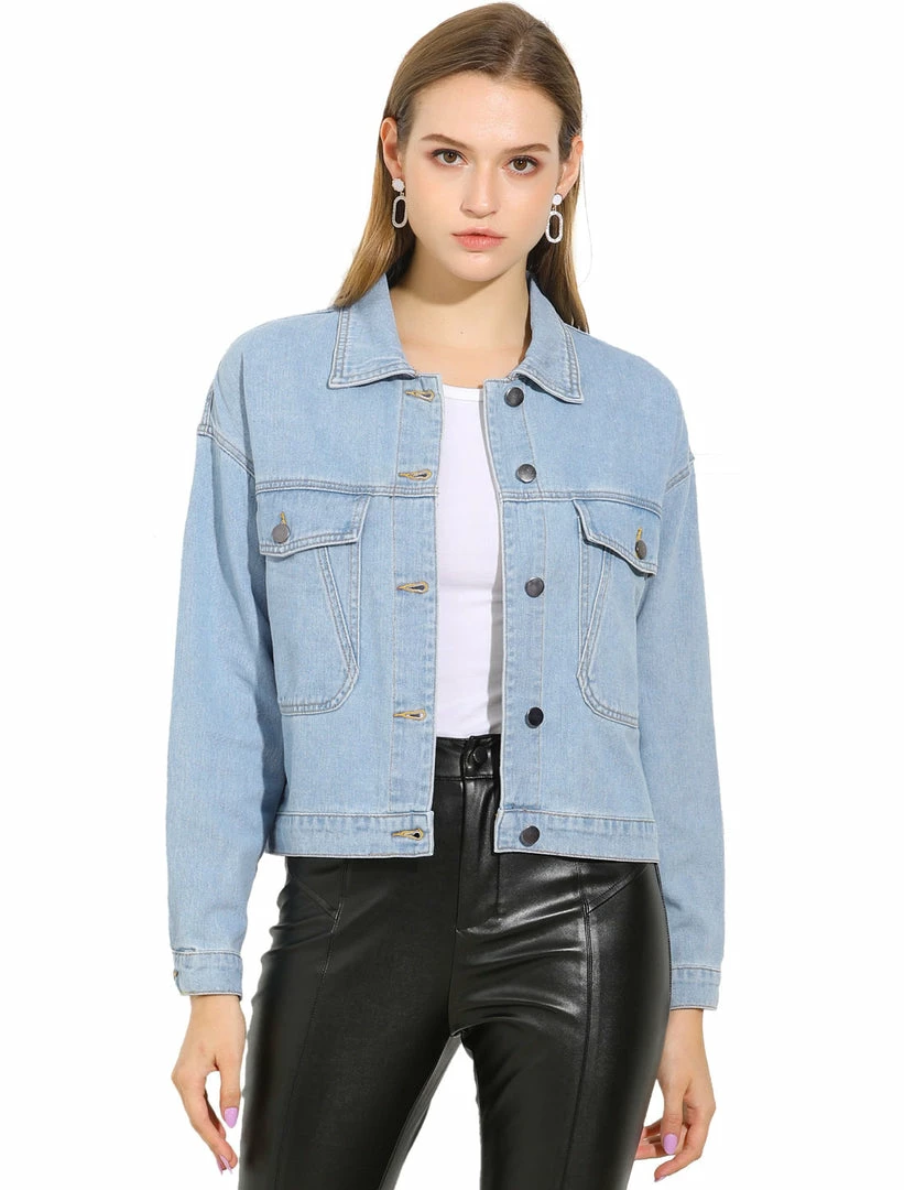 Allegra K Women’s Denim Jacket Button Up Casual Short Jean Jackets