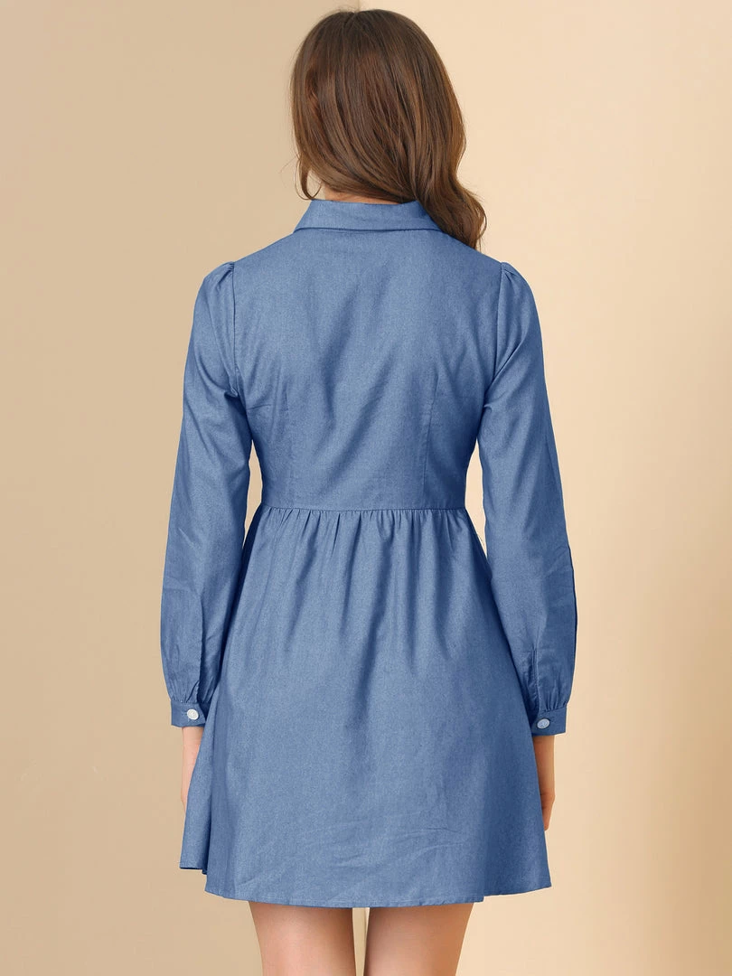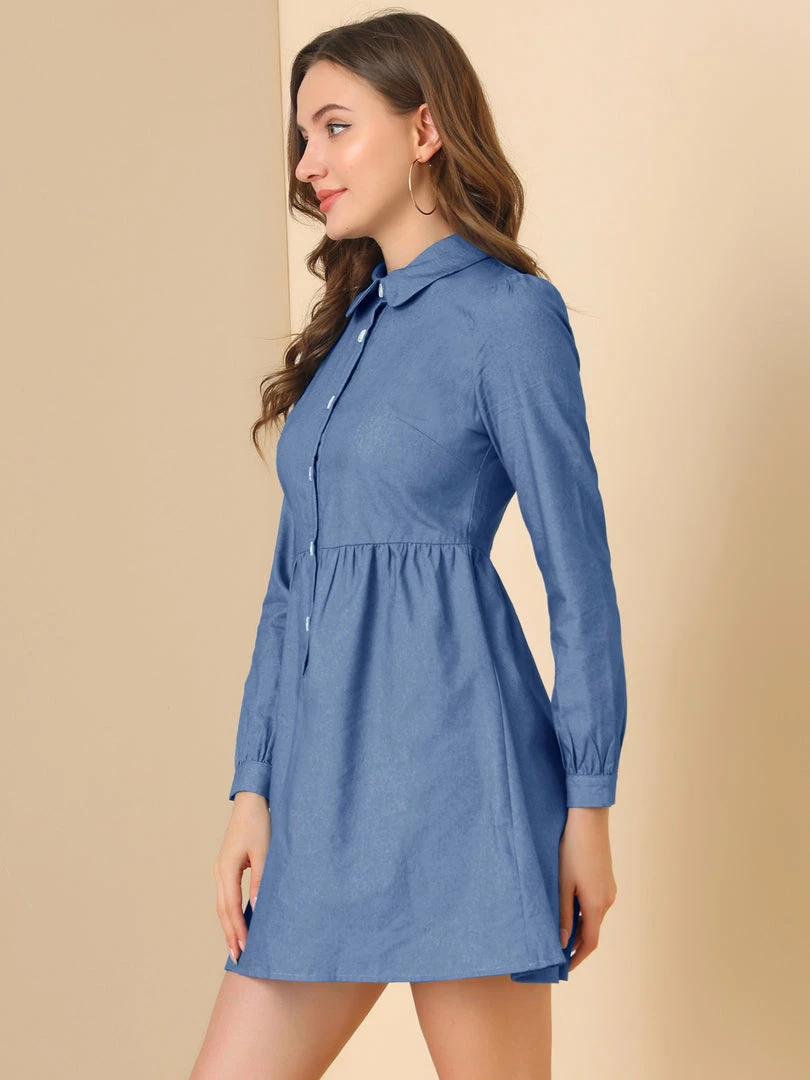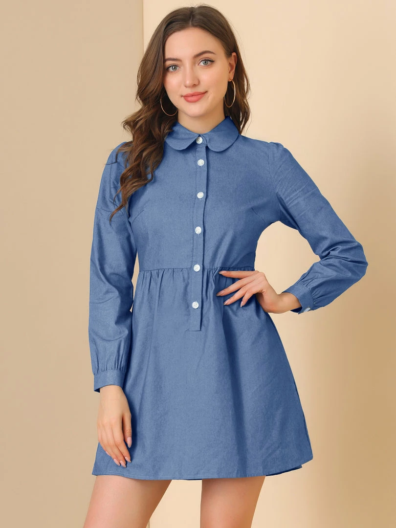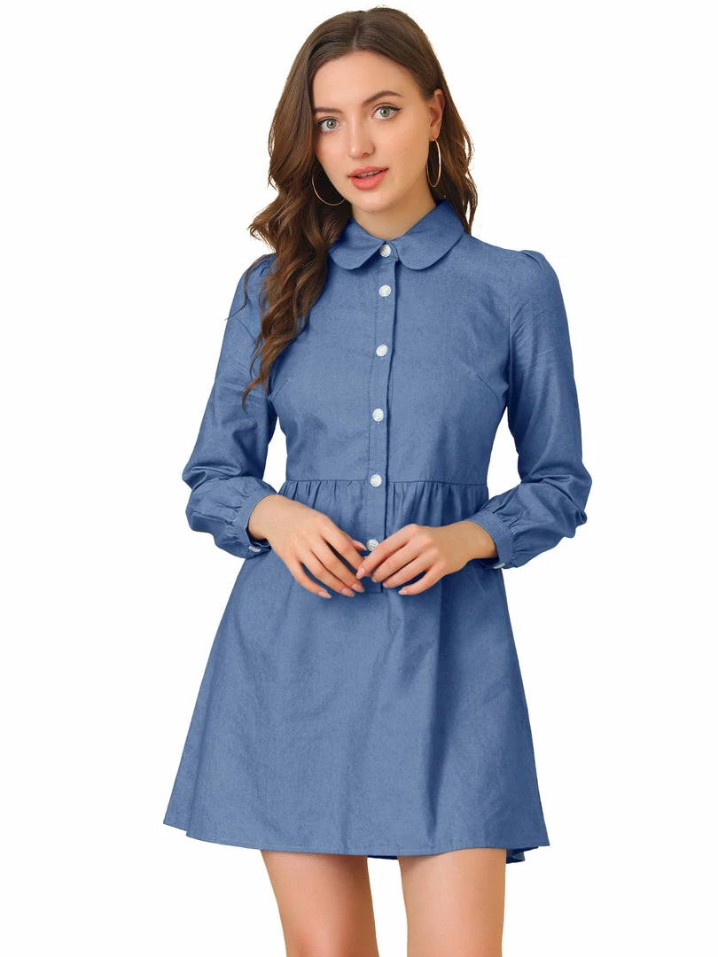 Allegra K Women’s Denim Peter Pan Collar Long Sleeves Button Front Shirt Dress