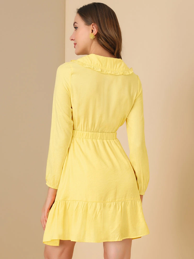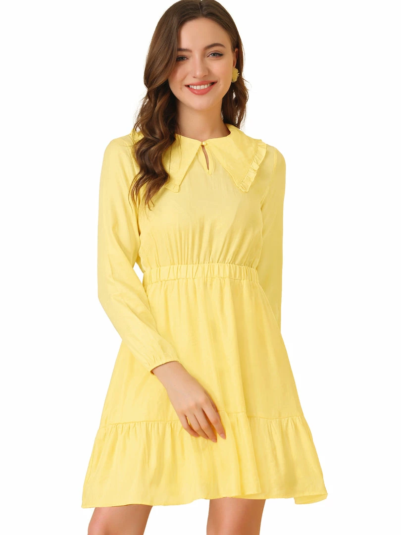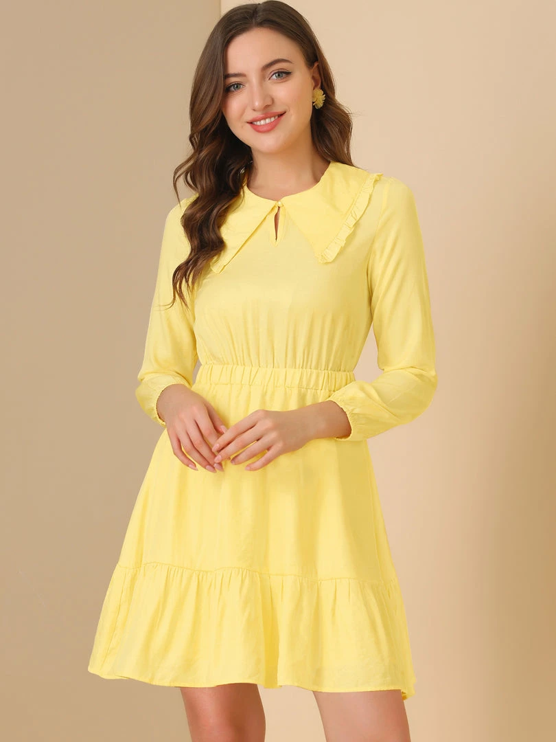 Allegra K Women’s Doll Collar Keyhole Front Elasticed Waist Ruffle Hem Dress