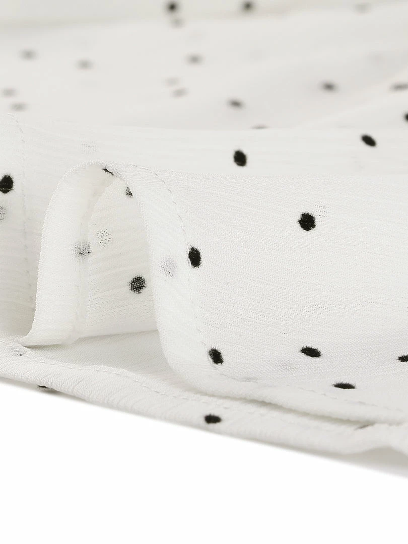 - Dots bow tie-neck blouse for summer. Chiffon fabric, very comfortable to wear in summer.