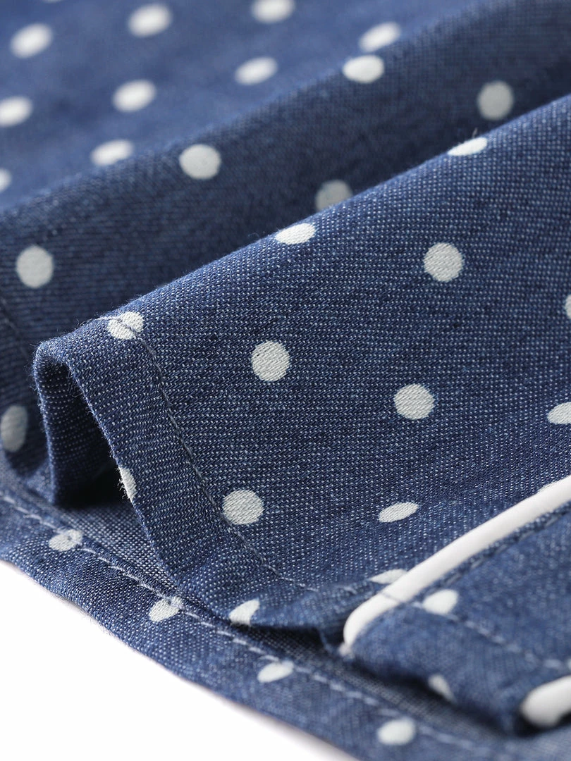 • This chic shirt completed with peter pan collar and dots print design, lending a youthful twist to the favorite career style.