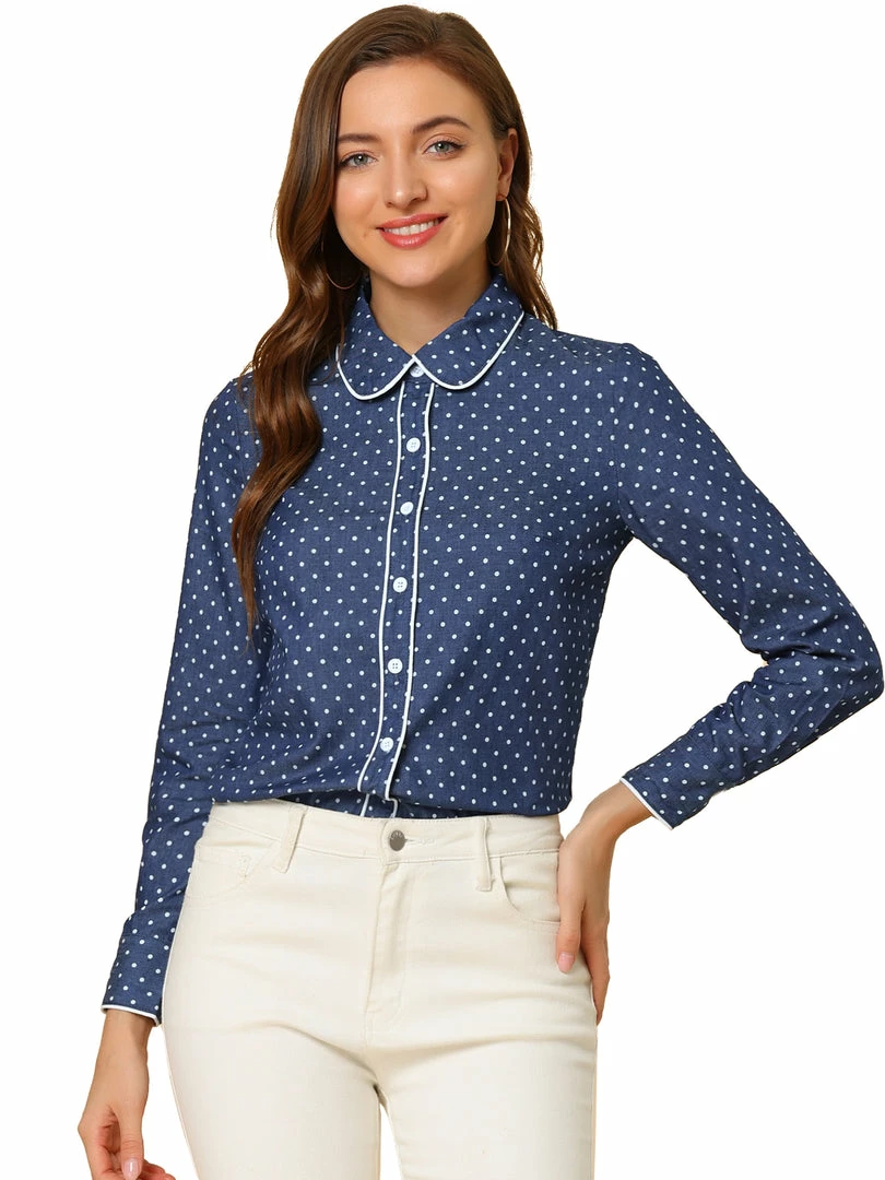 Allegra K Women’s Dots Vintage Button Front Elegant Peter Pan Collar Shirt