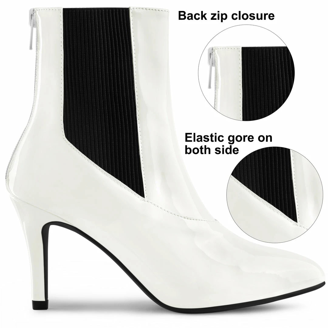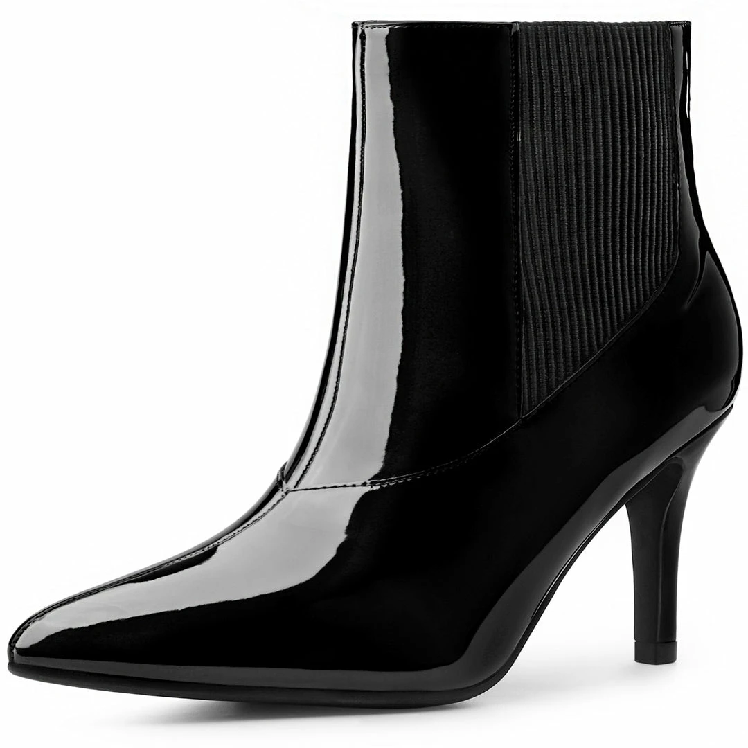These patent leather stiletto Heels ankle boots  in versatile black and comfortable patent faux leather which are a daily look must-have that will help you exude elegance with every step you take.