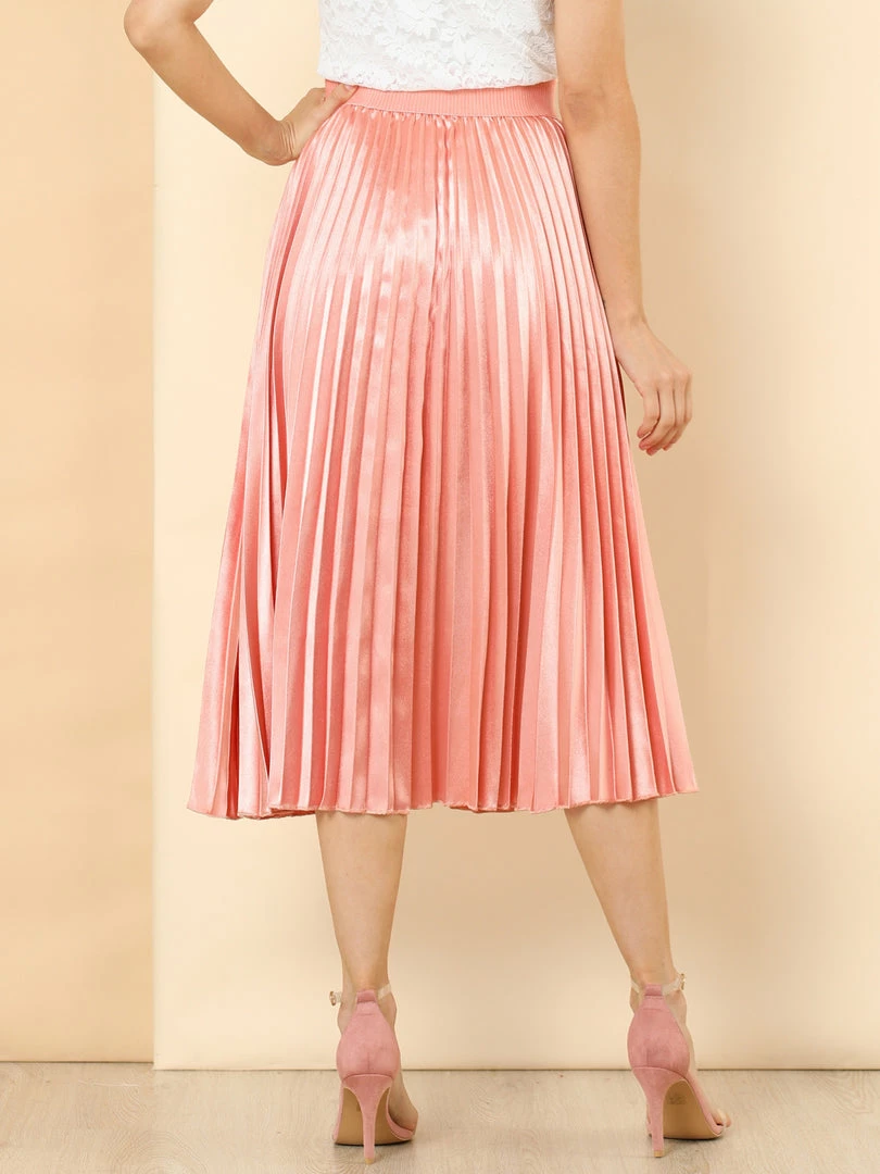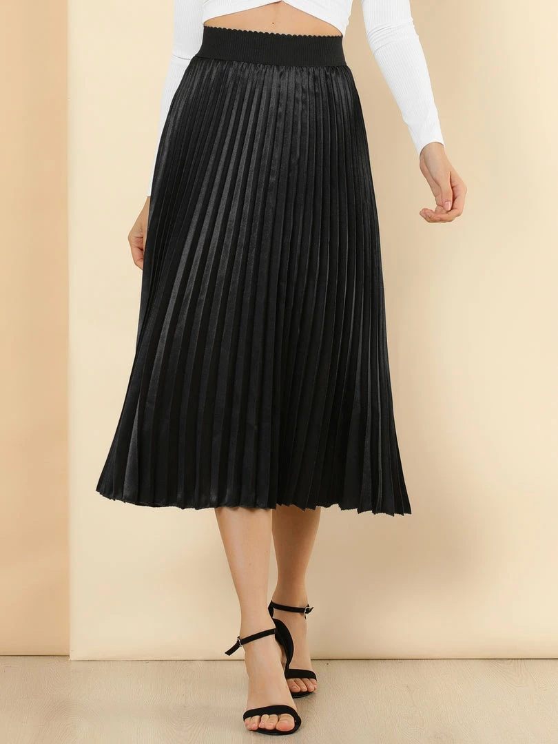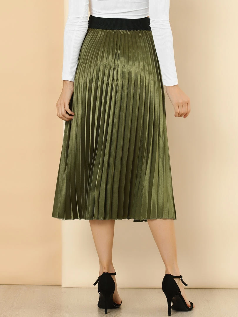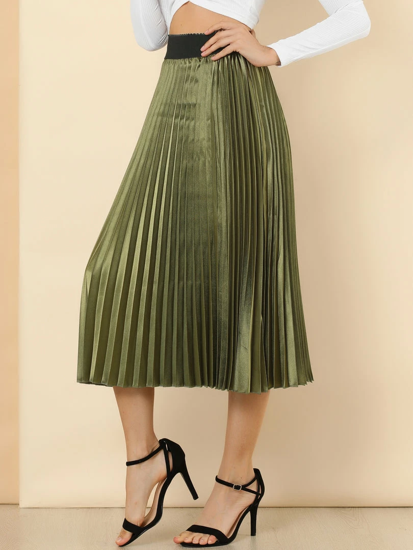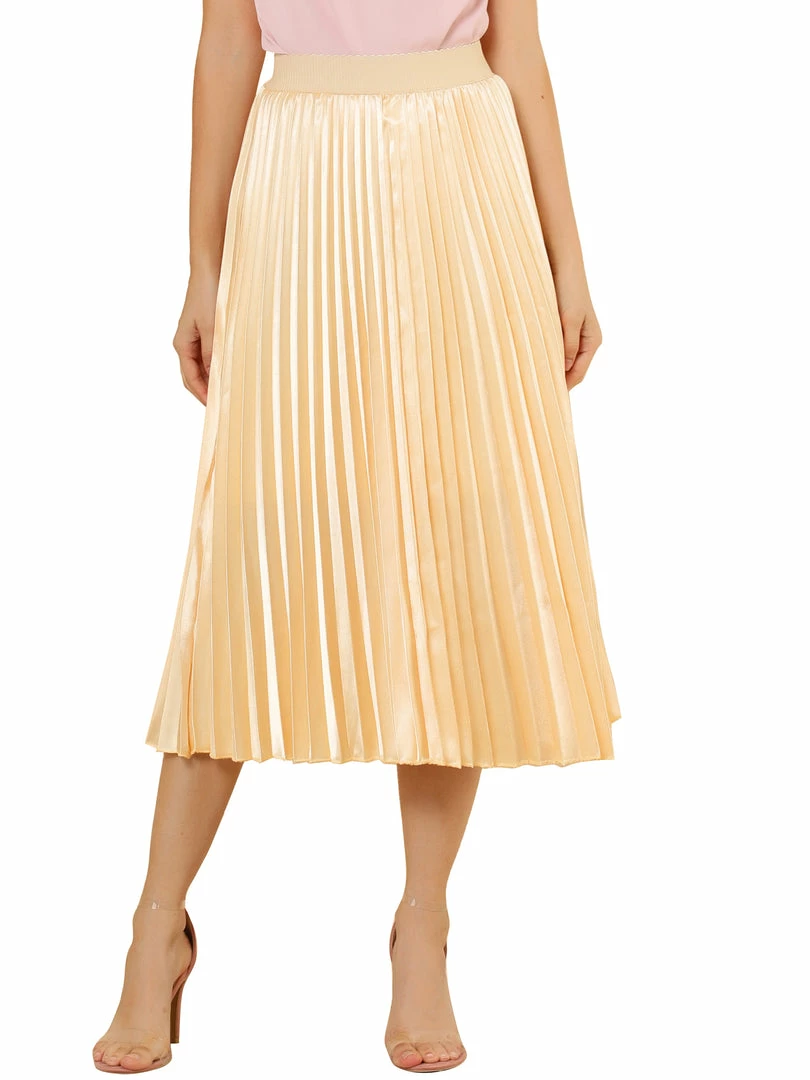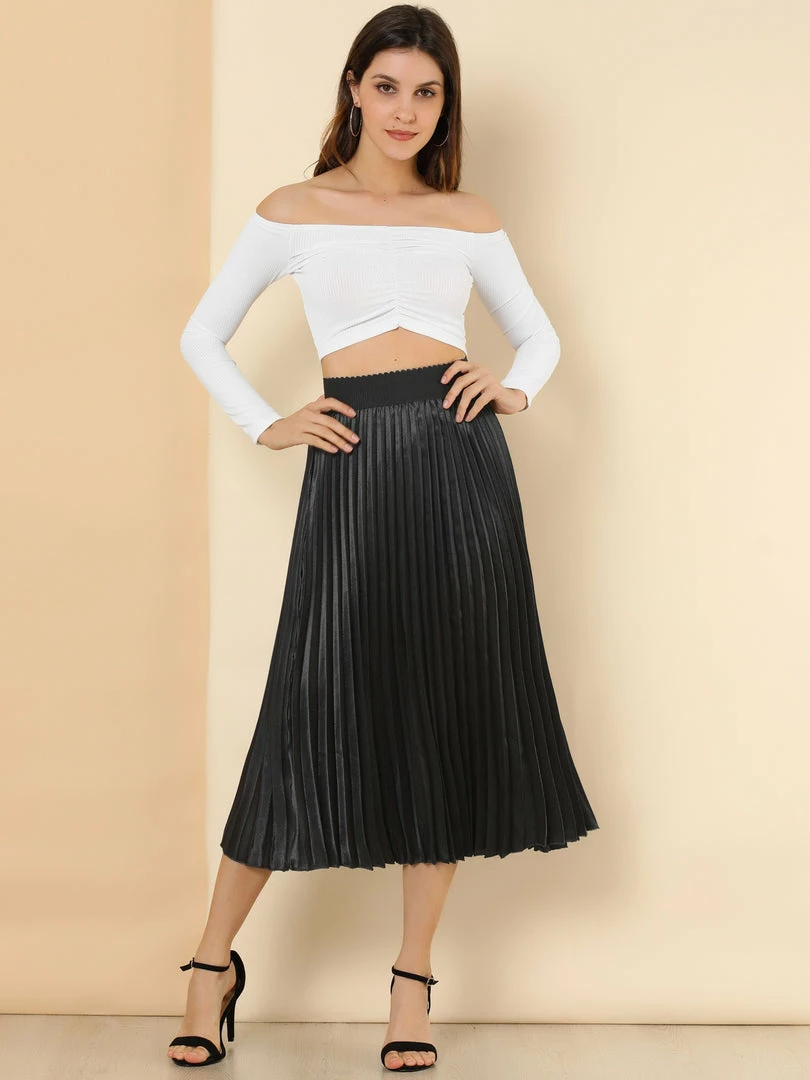 Allegra K Women’s Elastic Waist Party Metallic Accordion Pleated Midi Skirt