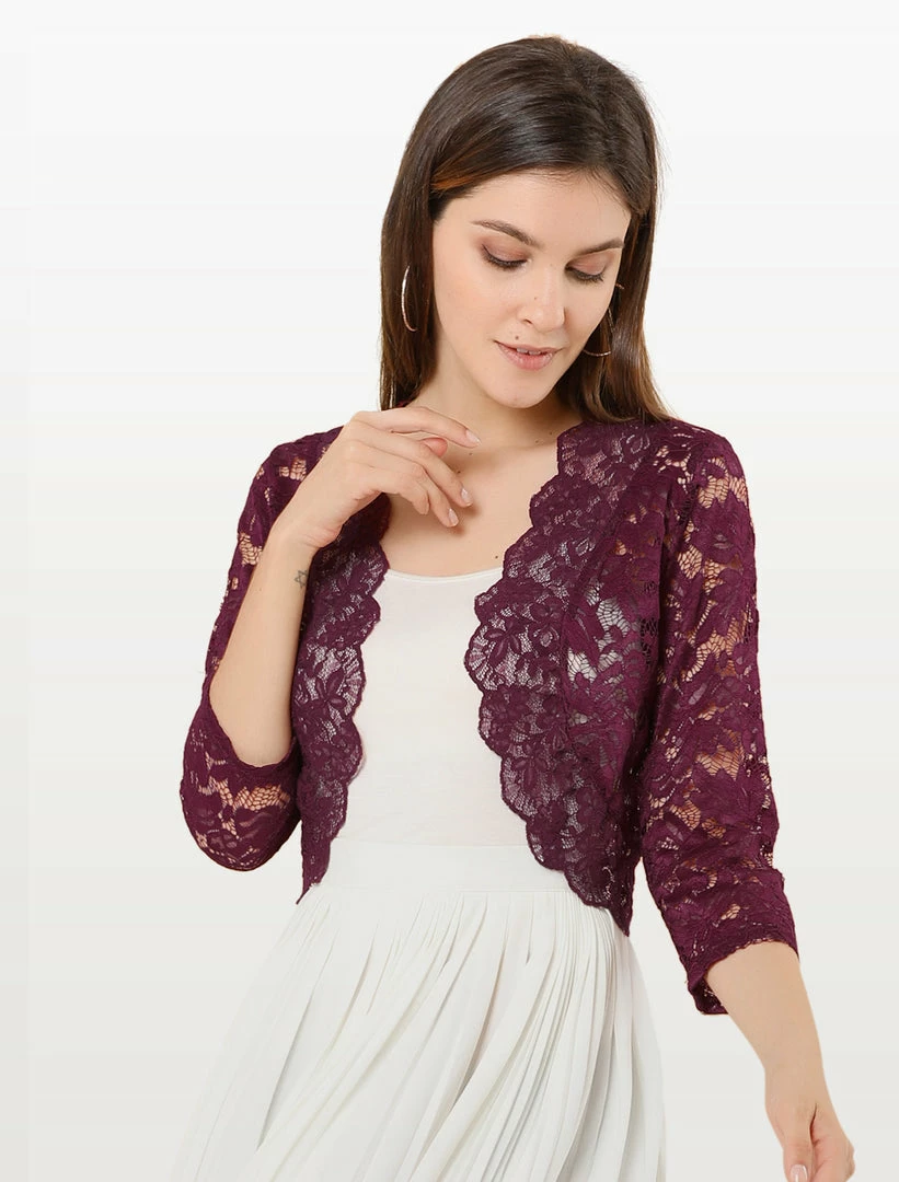 Allegra K Women’s Elegant 3/4 Sleeve Sheer Floral Lace Shrug Top