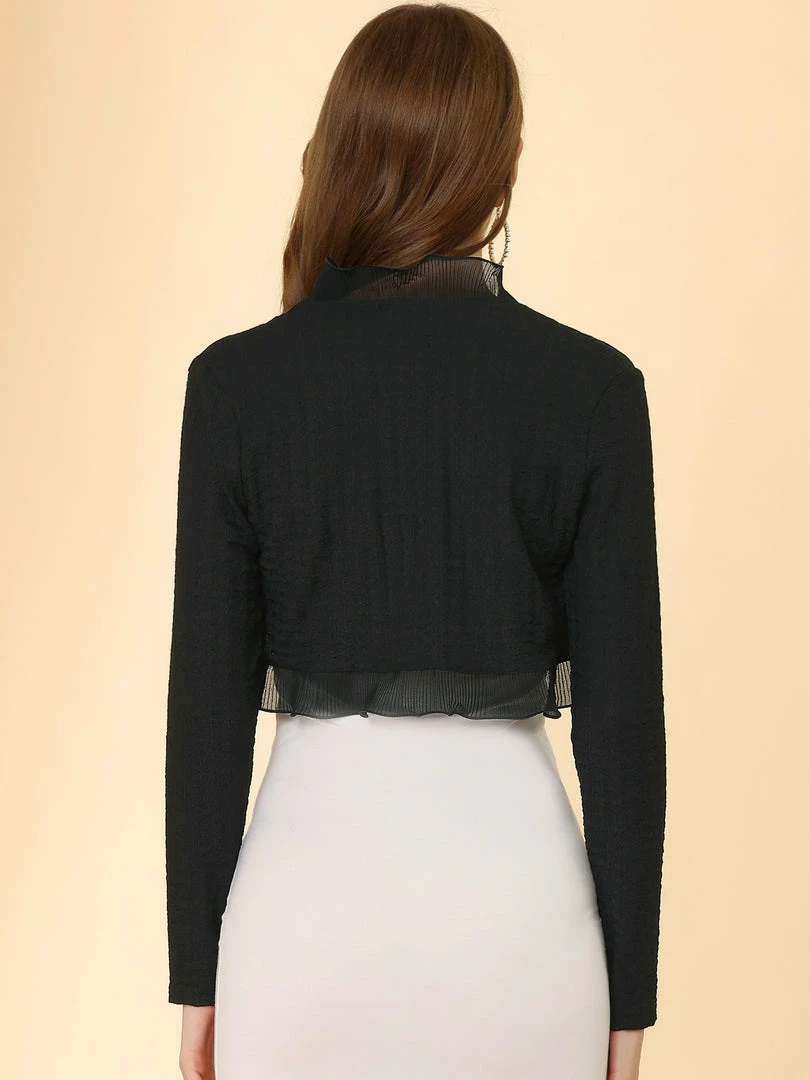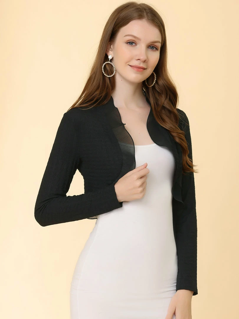Allegra K Women’s Elegant Ruffle Collar Crop Cardigan Knit Open Front Bolero Shrug