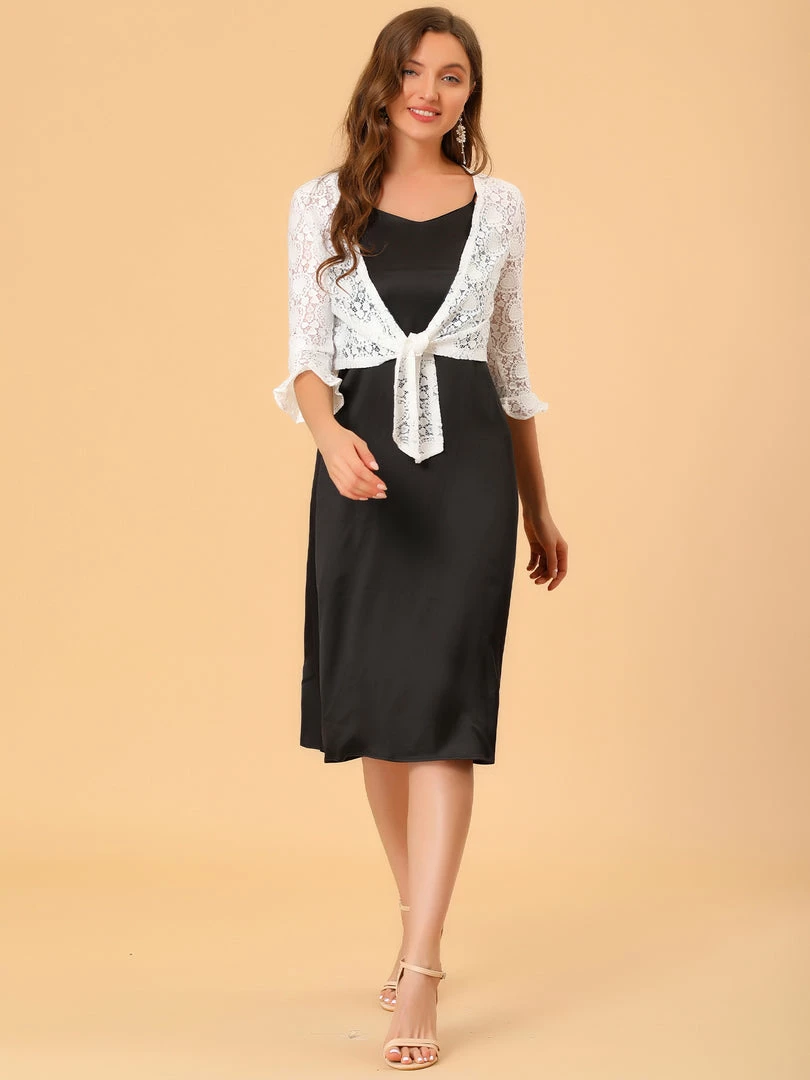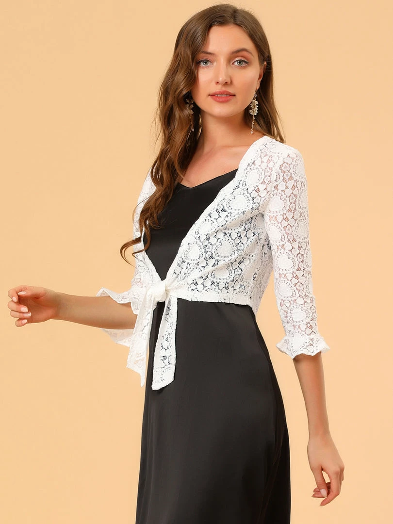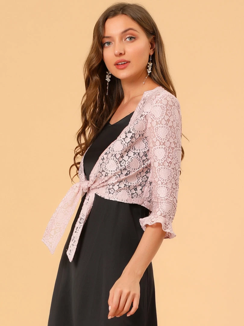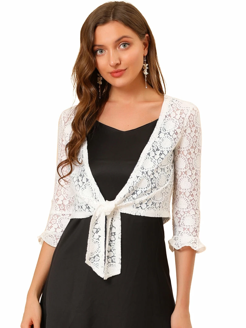 Allegra K Women’s Elegant Ruffled Sleeve Tie Front Lace Bolero Shrug Top