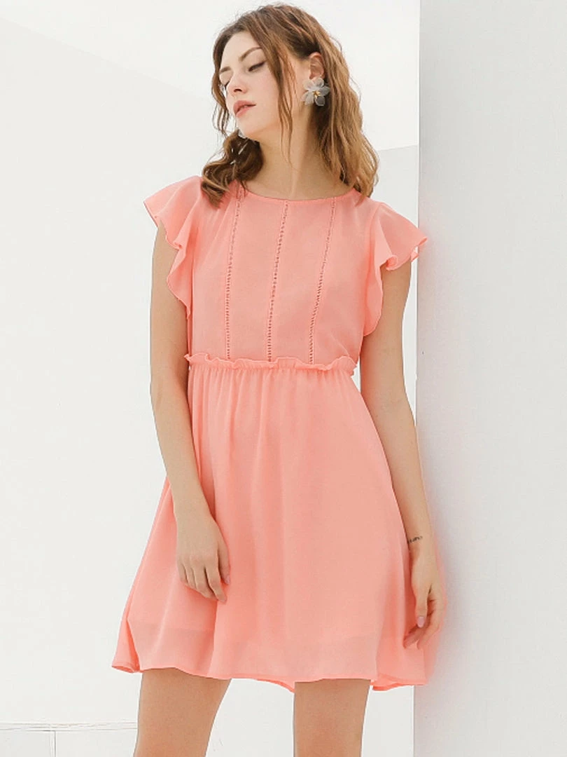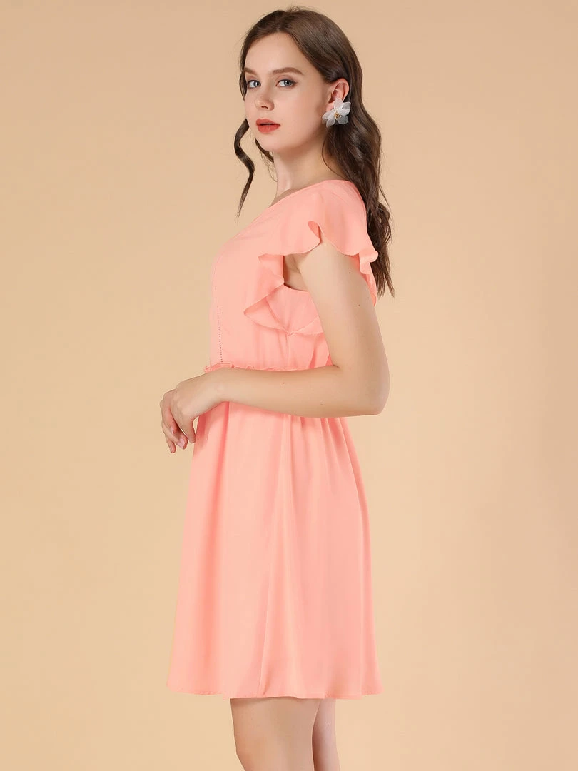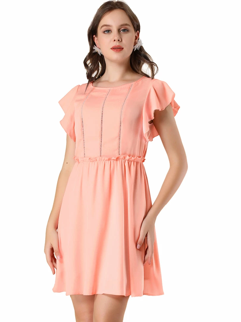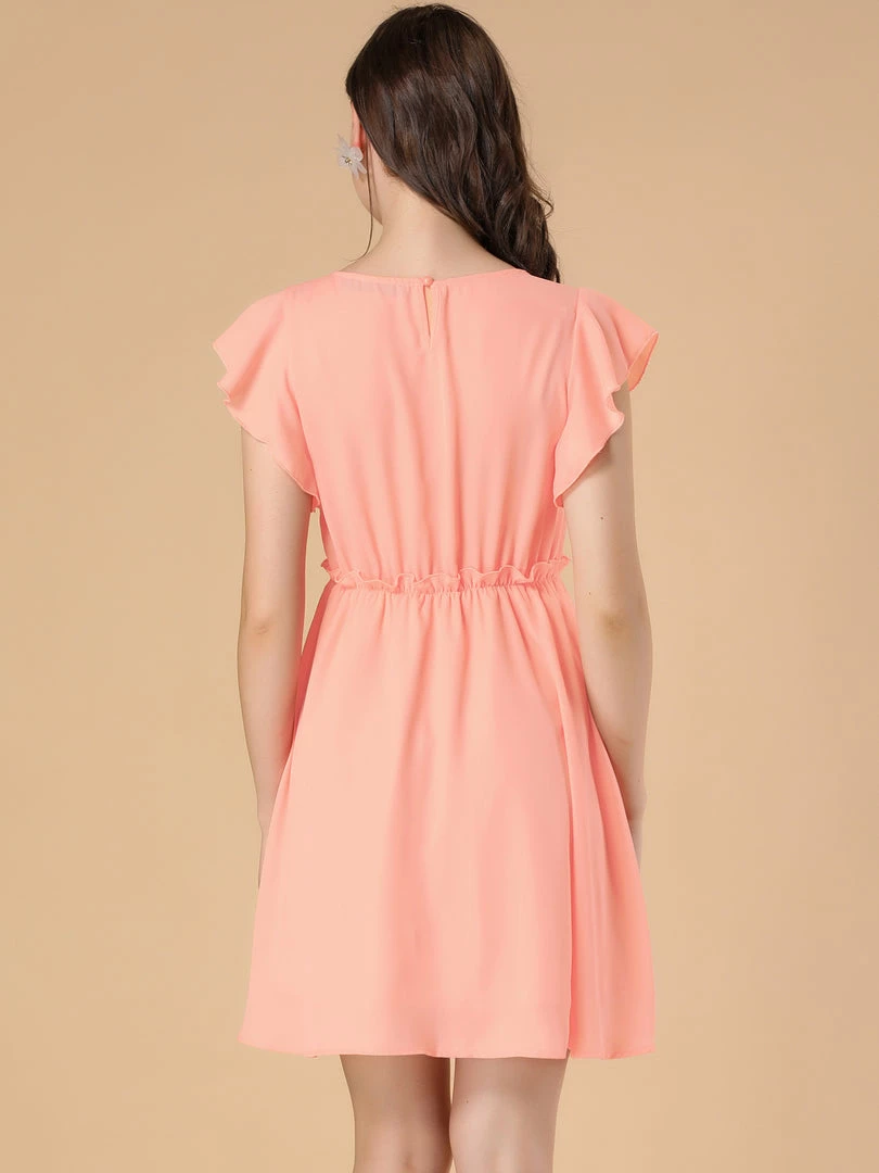 Allegra K Women’s Elegant Ruffled Waist Round Neck Flutter Sleeve Mini Dress