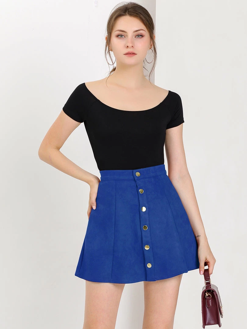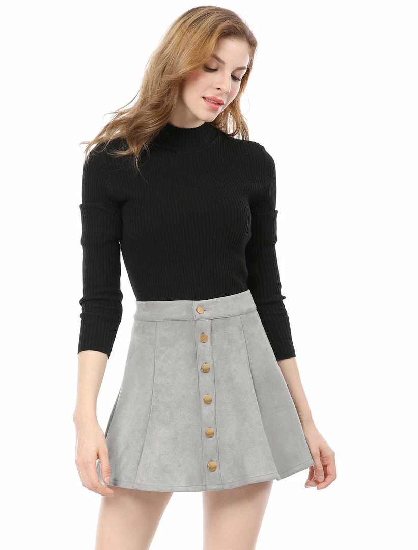 • Transition your leg-flaunting looks into cooler weather with a miniskirt cut from ultrasoft faux suede with front single breasted.