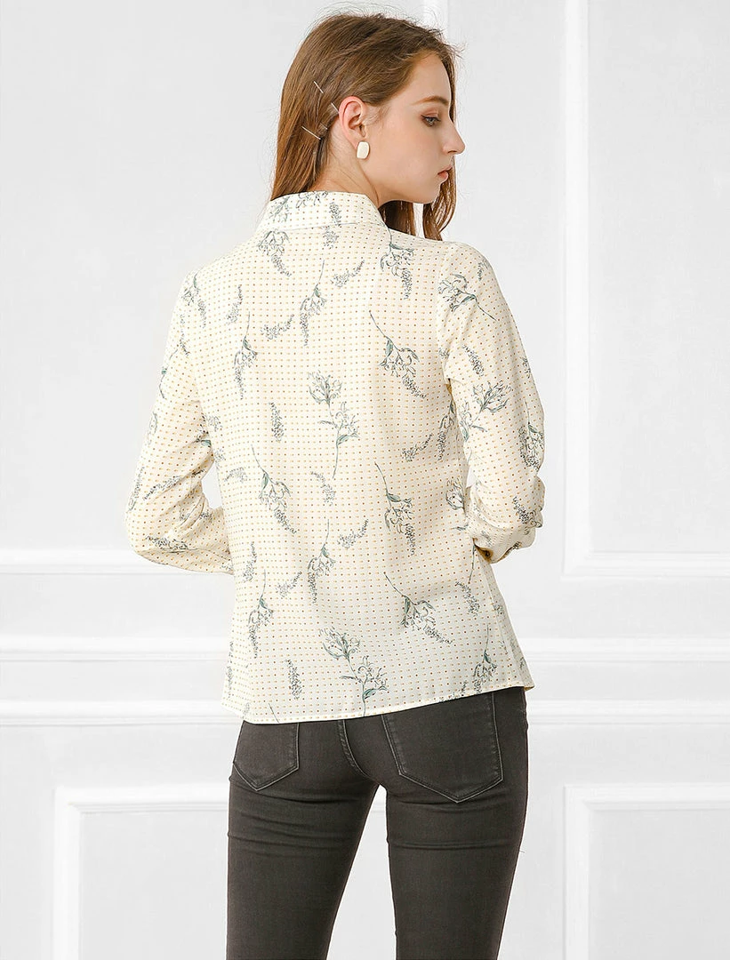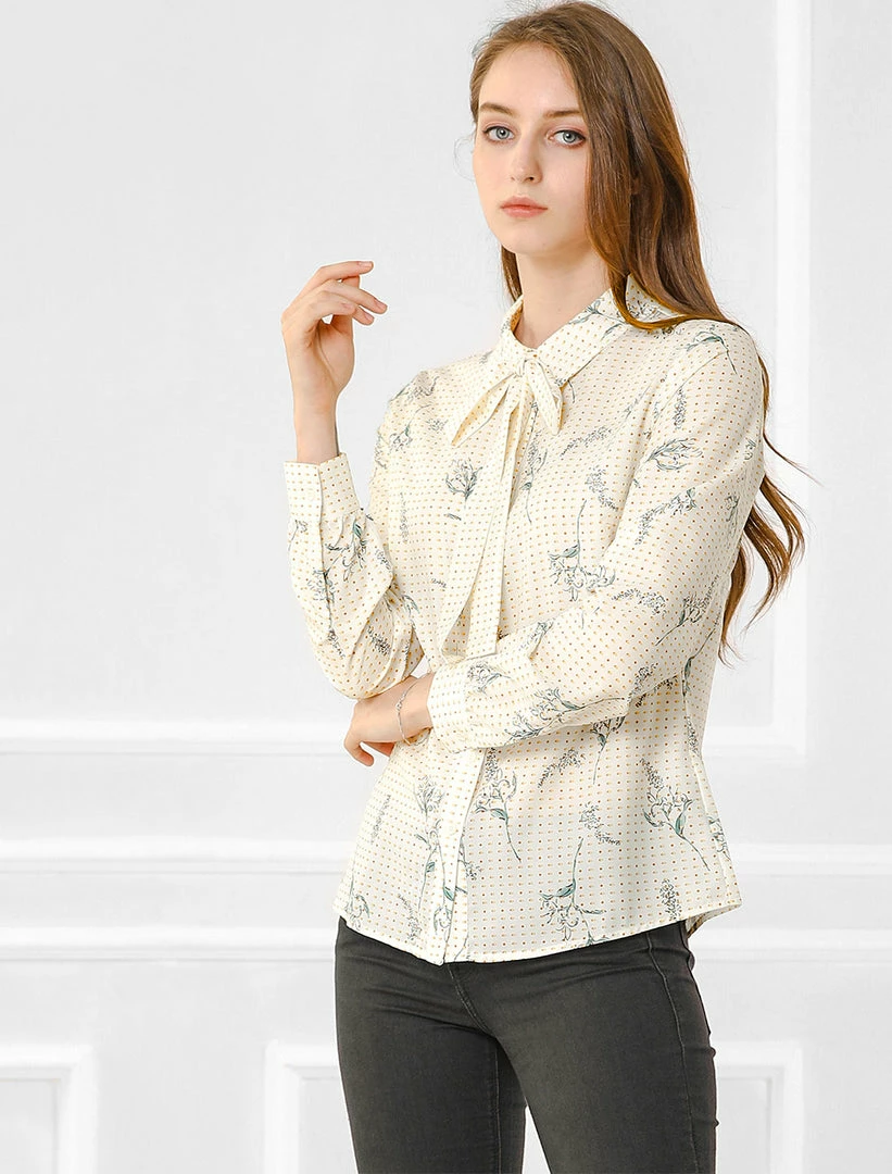 Allegra K Women’s Floral Dots Printed Tie Neck Blouse Casual Office Shirt