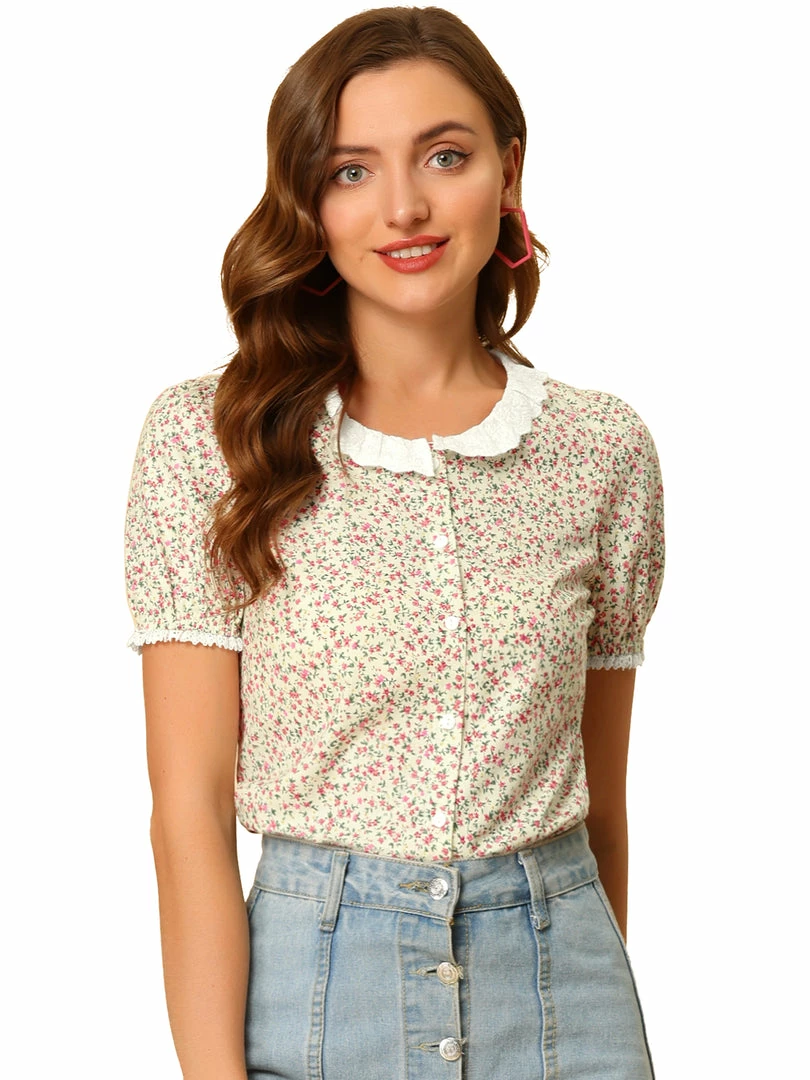 - This short sleeve shirt is enhanced by cute floral and embroidered design and will add right into your spring-summer wardrobe.