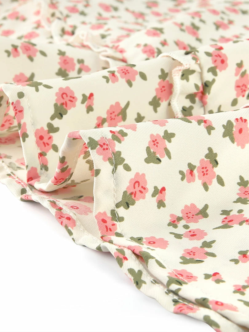 Its fluttering ruffle detail has a timeless charm, while the contrasting floral motif will make you bloom.