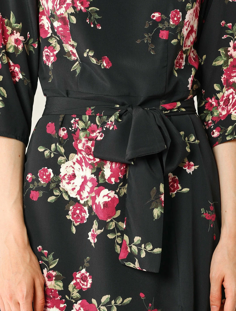 - This floral self-tie round neck long dress will help your wardrobe flourish.