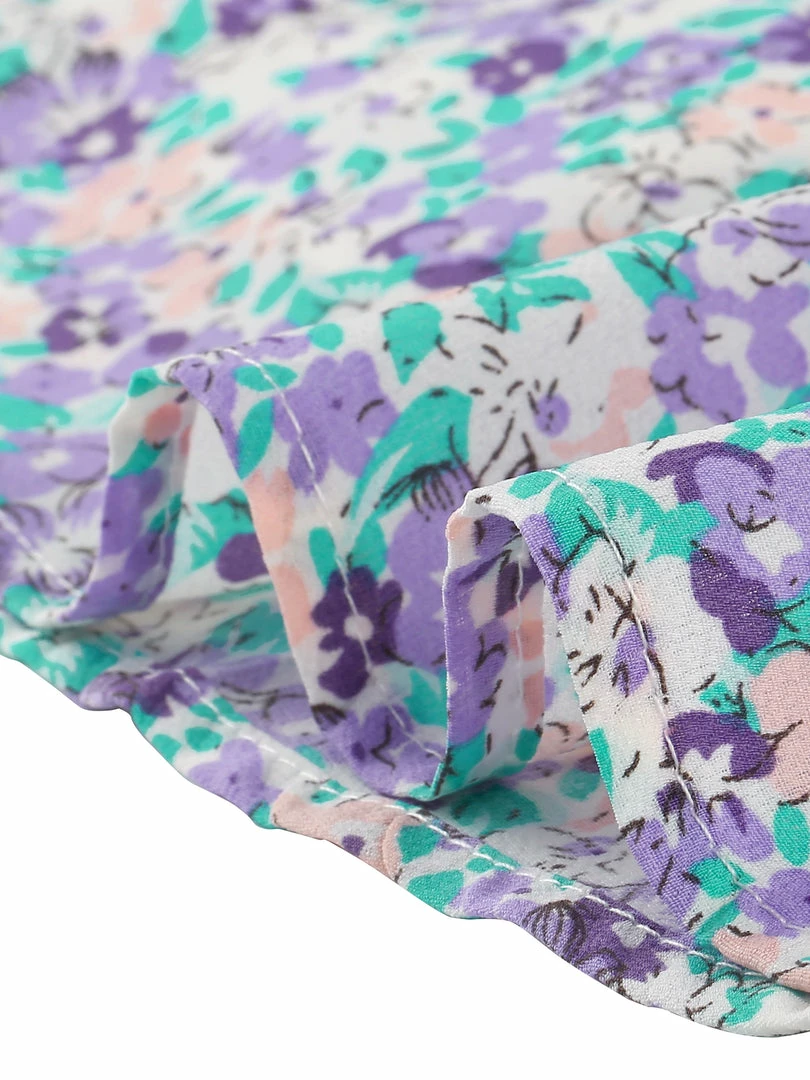 - The floral dress, with a fresh tone and flared hem, gives a clean and pure feeling.