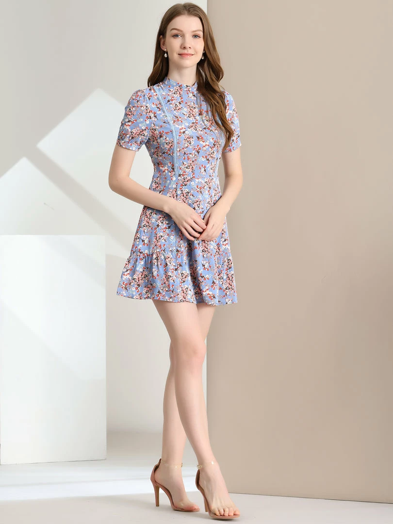 Allegra K Women’s Floral Short Sleeve Self Tie Summer Above The Knee Dress