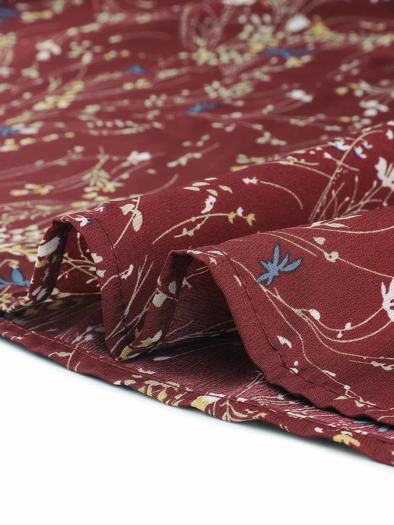 Allegra K Women’s Floral Smocked Waist Puff Sleeve Self-Tie Neck Mini Dress