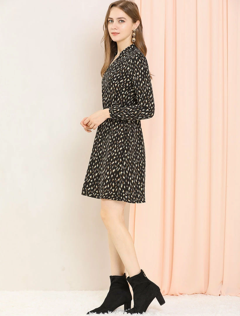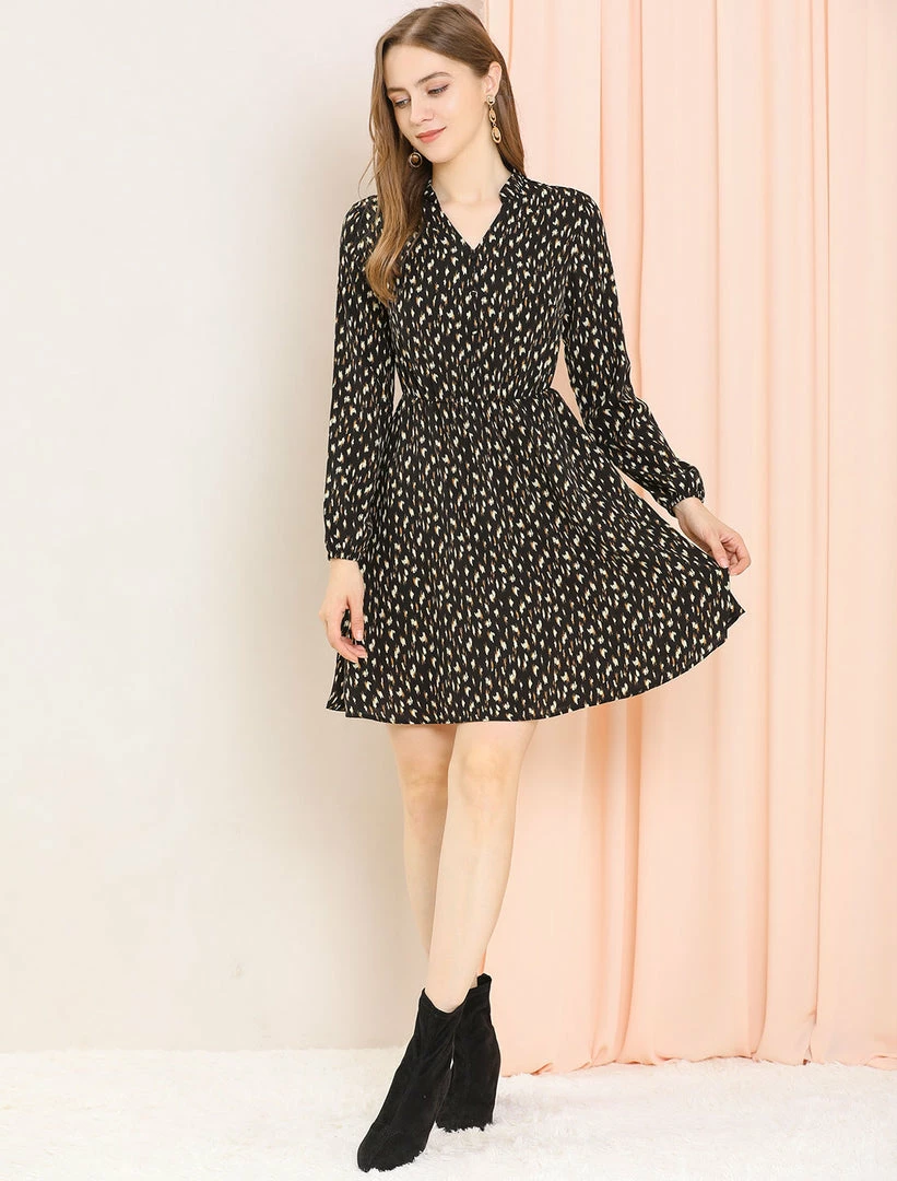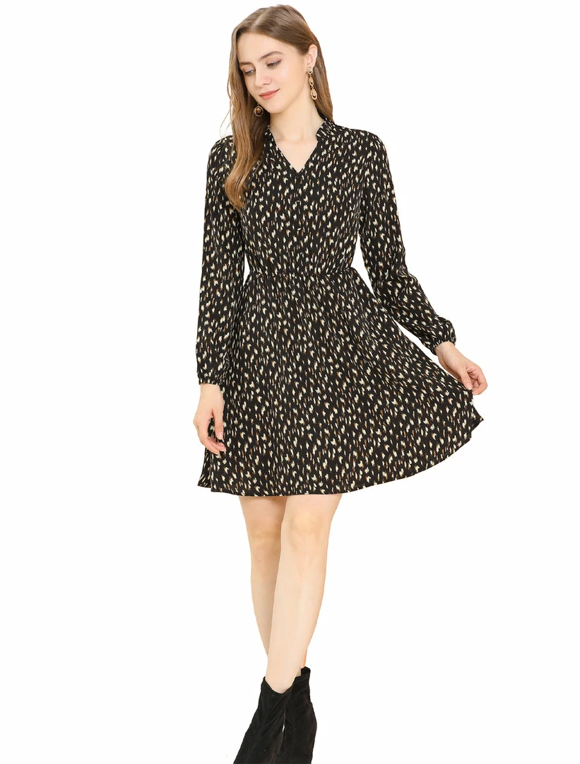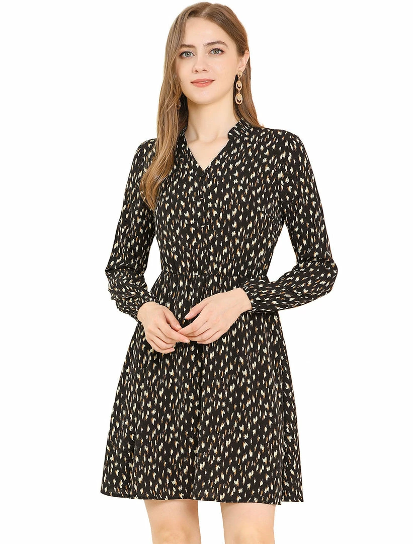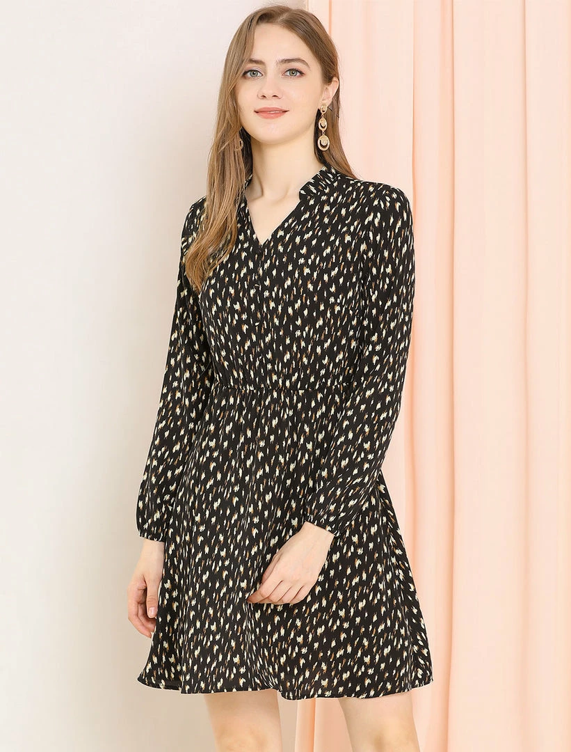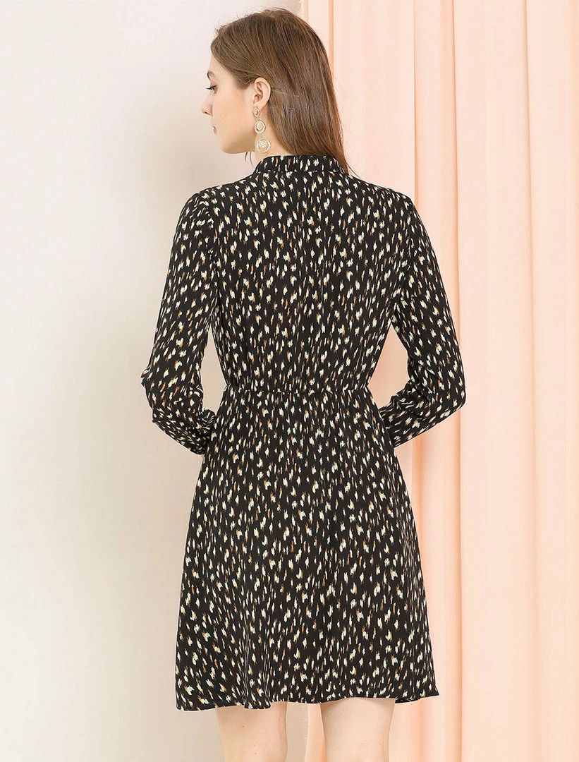 Allegra K Women’s Floral Stand Collar Wild Button Decor Leopard Print Dress