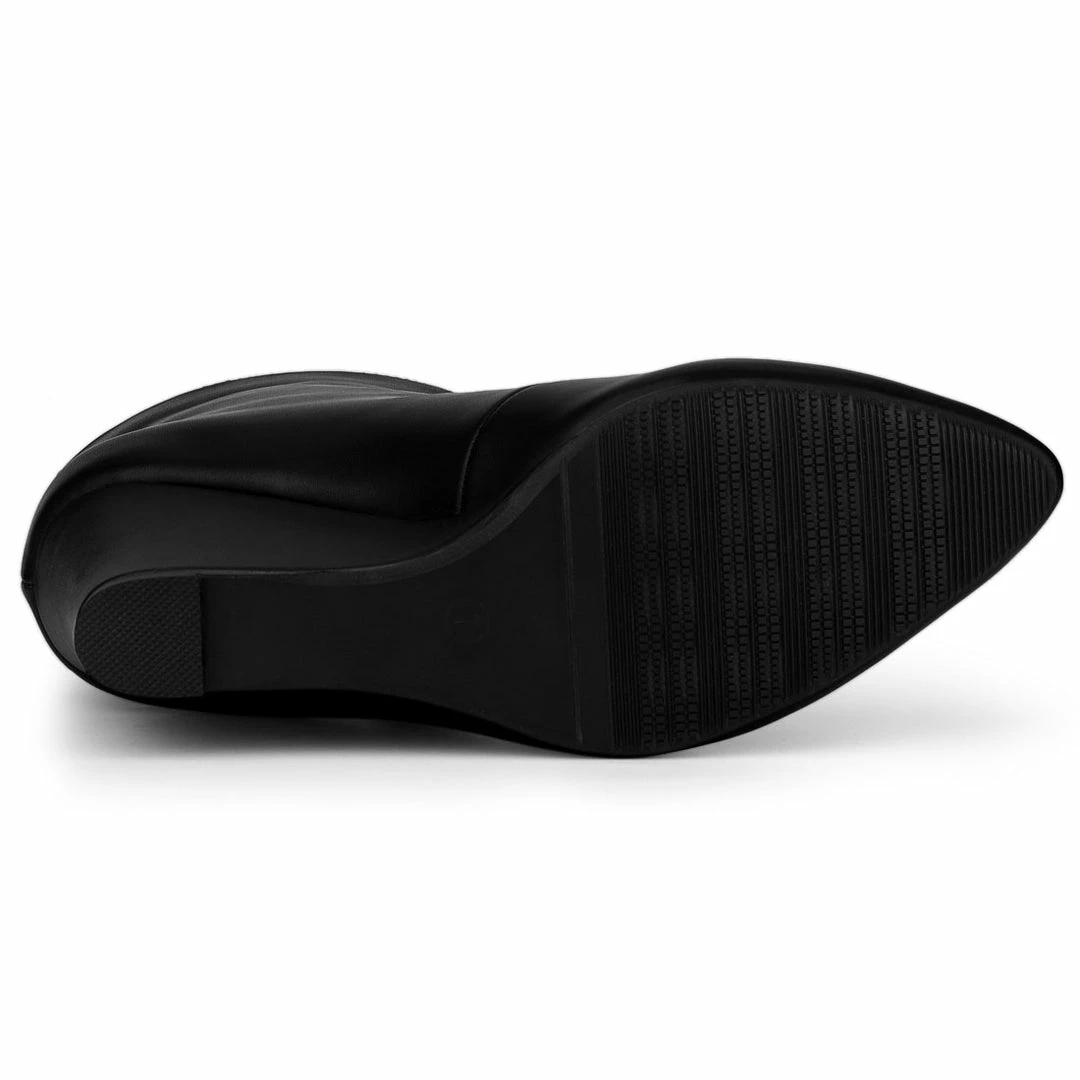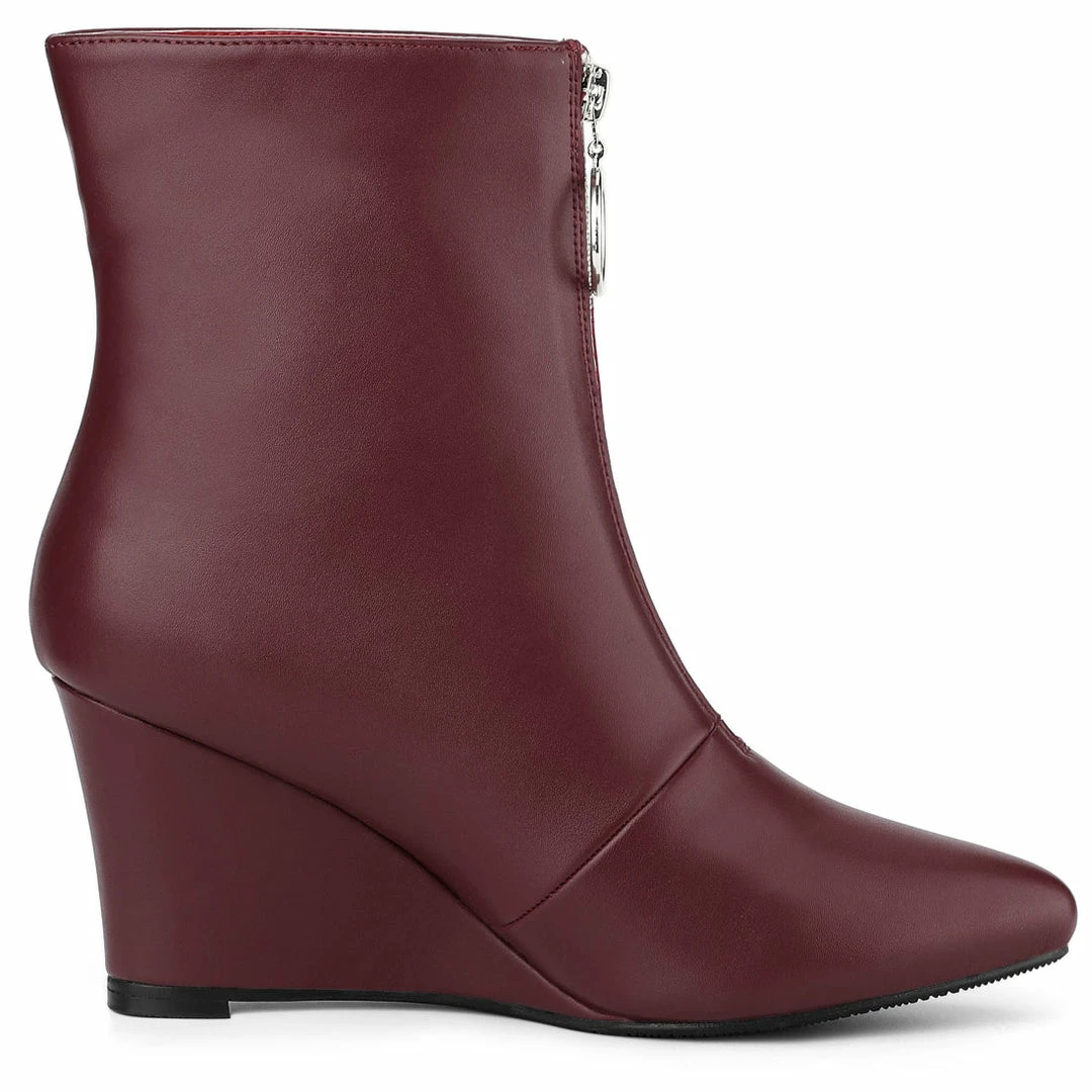 Finish off your outfit with our stylish Premium Collection chic boots. Crafted in a luxurious synthetic leather upper, they have a pointed toe, wedge heel and a front zip with stylish details. Team with dress for an on-trend look. A modern distinctive look, with ultra-contemporary styles that are vigorous, bold, elegant.