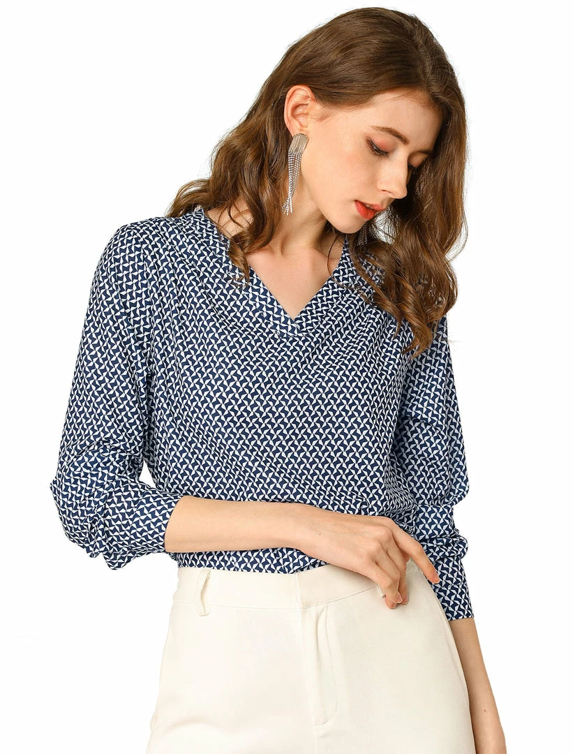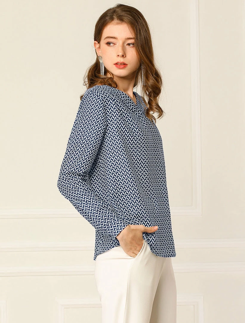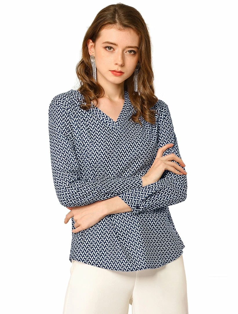 Allegra K Women’s Geometric Prints Long Sleeve Work V-Neck Tops Shirt Blouse