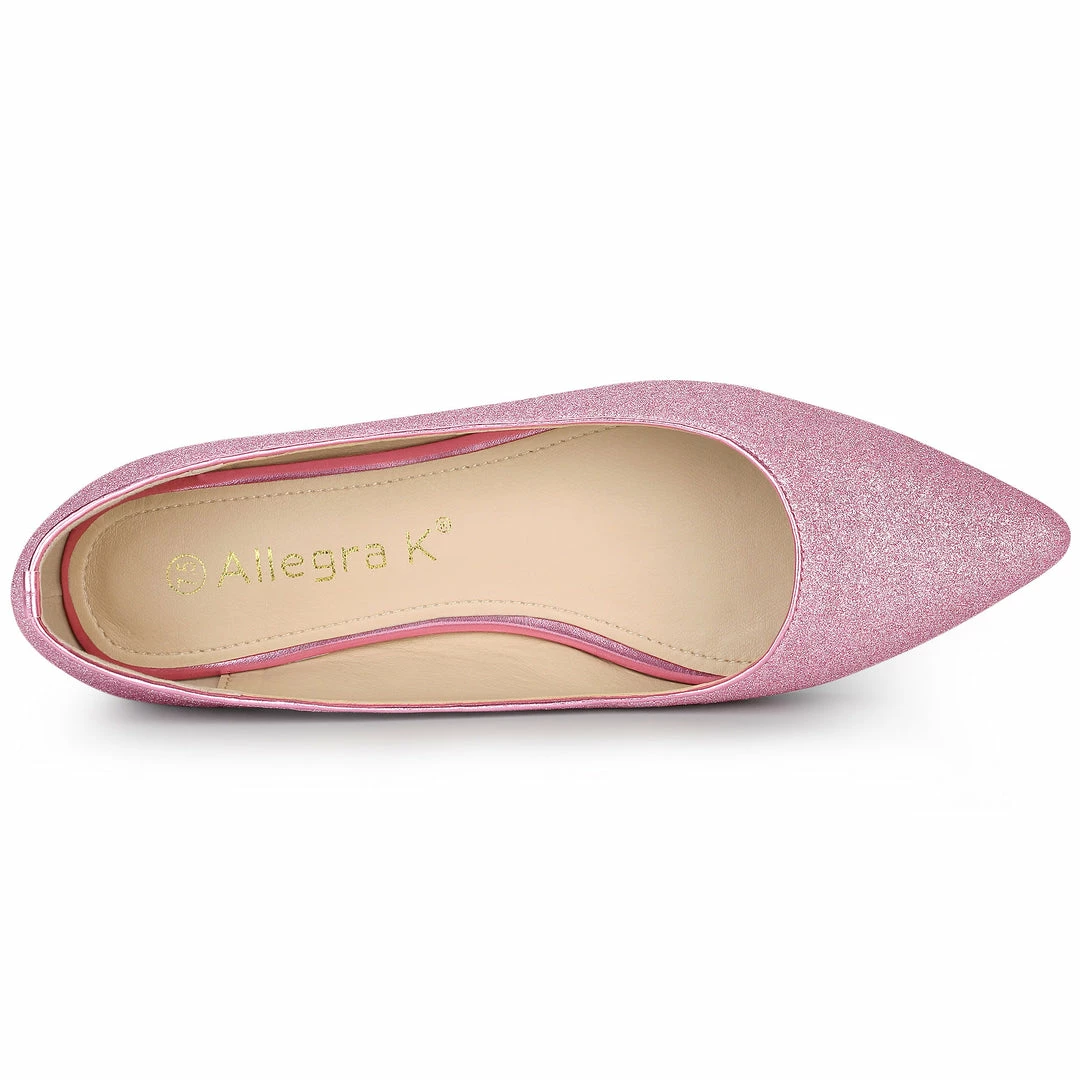 Flats are saturated in glitter that really catches the light. They’ll add a glamorous touch to anything from colorful skirts to cropped denim.