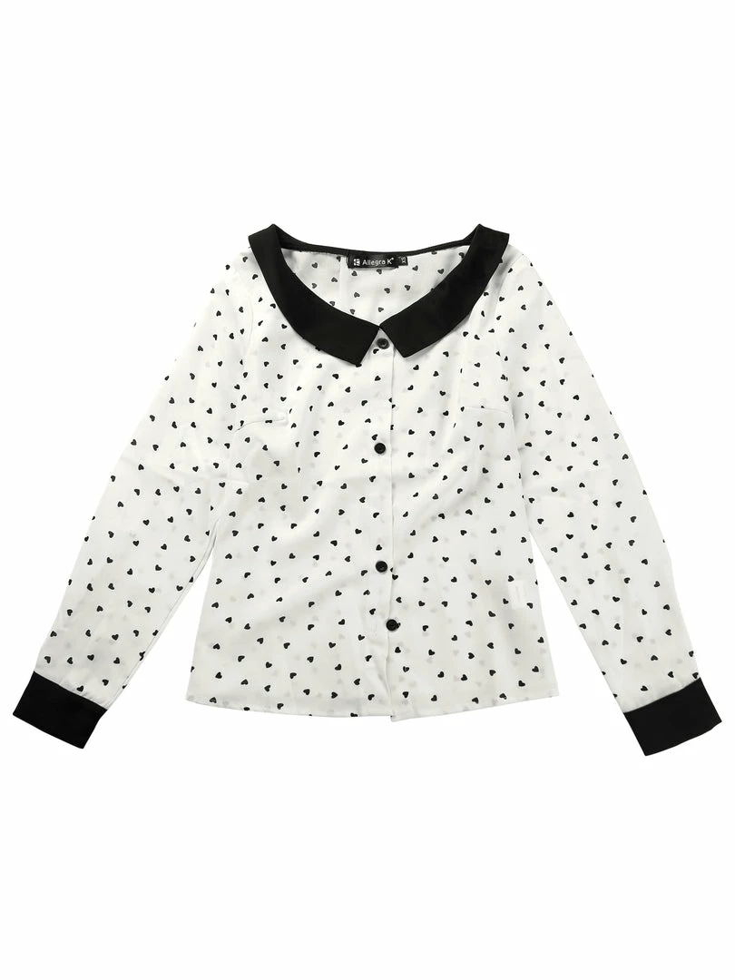 Allegra K Women’s Heart Print Contrast Collar Button Front Long Sleeve Shirt