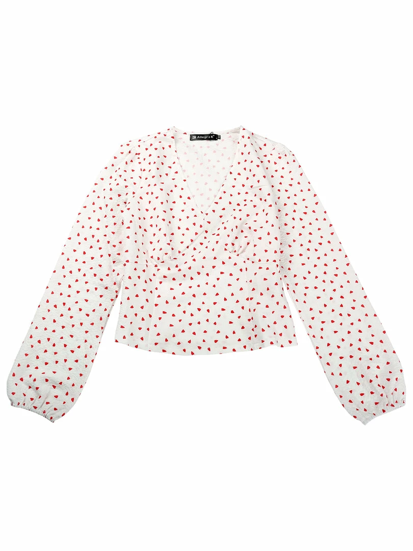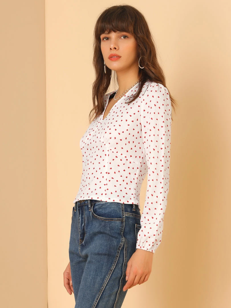 Allegra K Women’s Heart Print Cute Sweet V Neck Long Sleeve Shirt Blouse