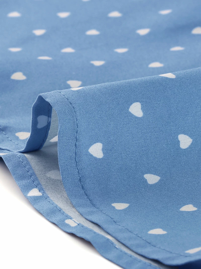 • Peter Pan Collar, Hearts Print, Button Cuffs, Lace Insert, Invisible Zipper, Waist dart