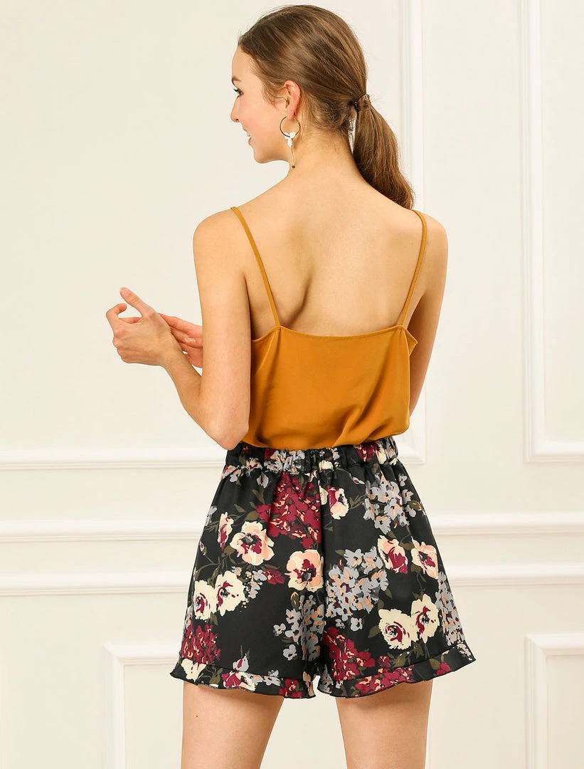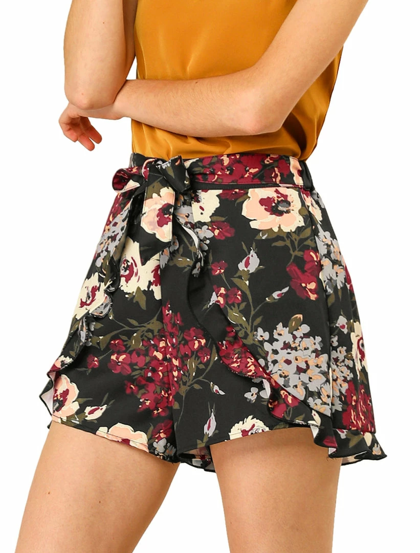Allegra K Women’s High Tie Elastic Waist Ruffle A-Line Floral Culottes Shorts
