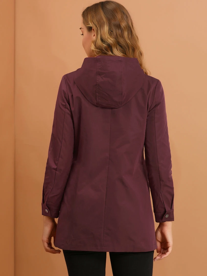 Allegra K Women’s Hooded Trenchcoat Windbreaker Lightweight Outdoor Rain Jacket