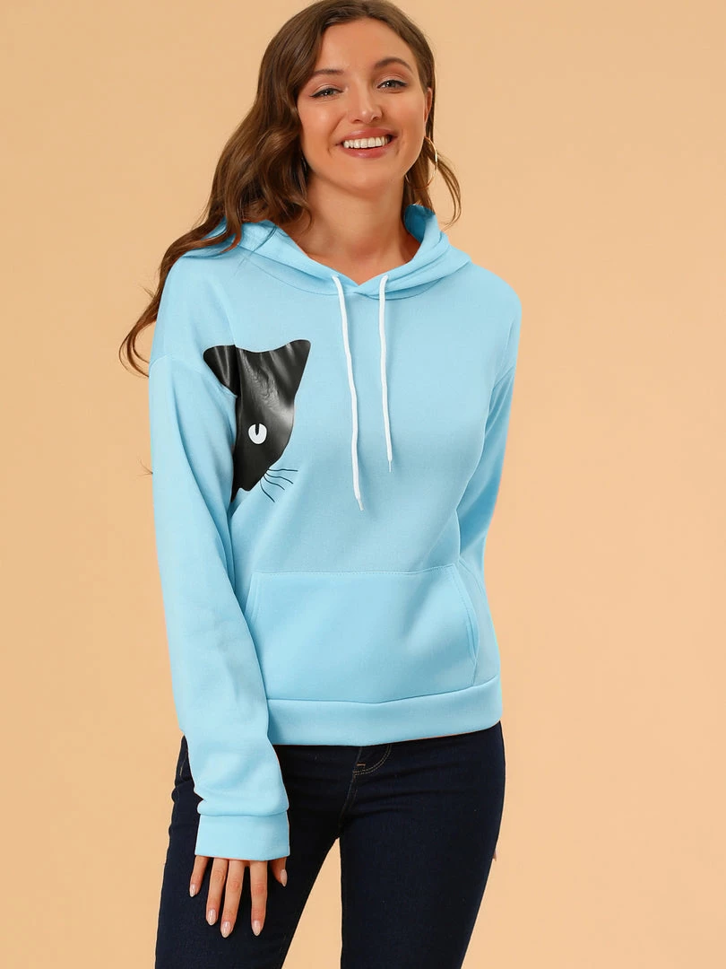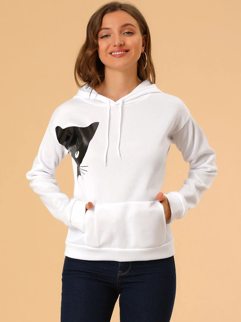 Allegra K Women’s Hoodie Cute Rabbit Ear Cat Printed Long Sleeve Sweatshirt Pullover Tops Blouse