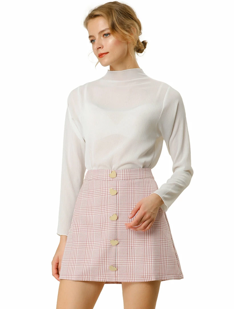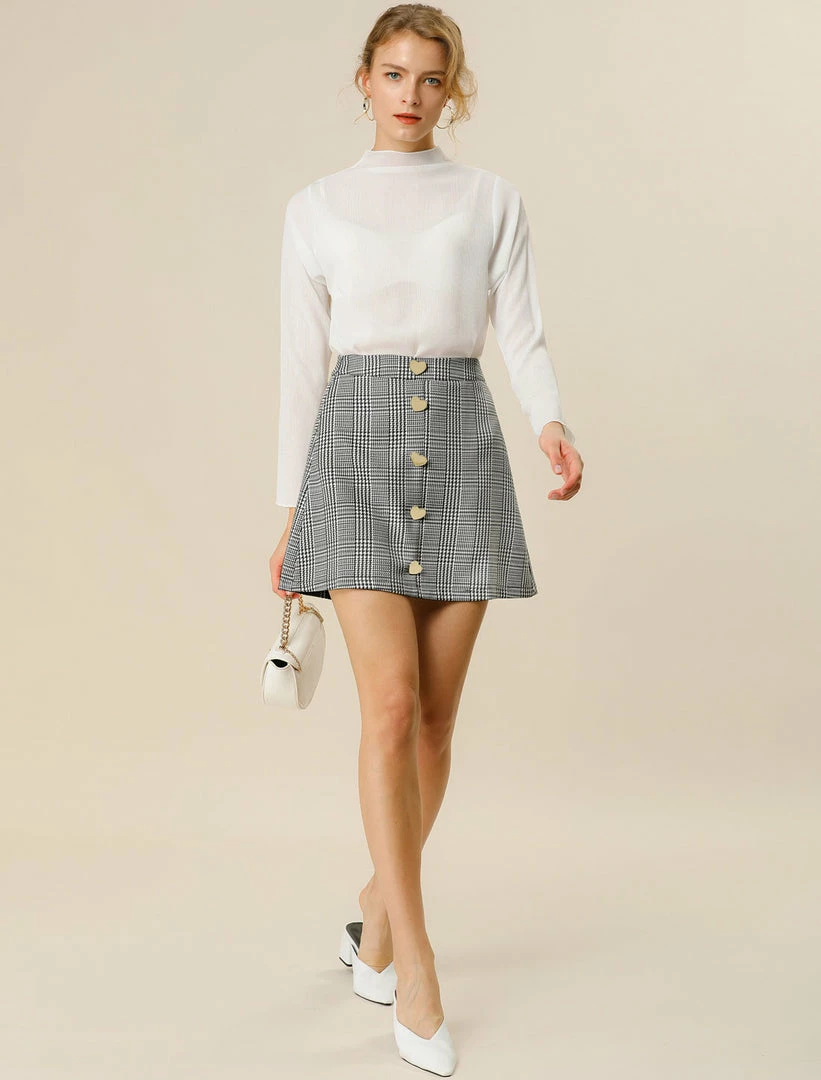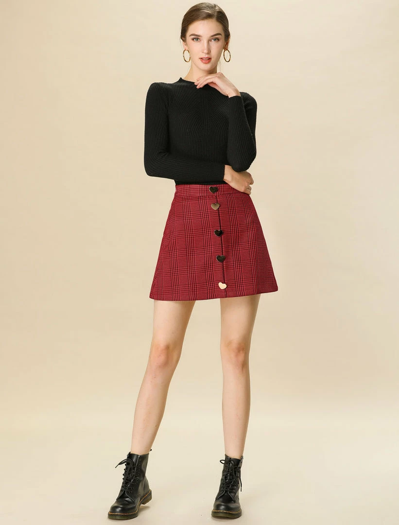 Featuring shiny heart buttons decor at front, this fully lined skirt is cut for an a-line fit that falls to a mini length.