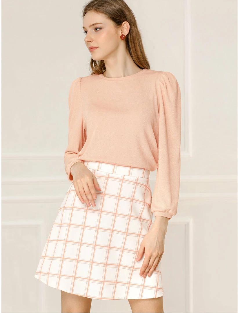 Allegra K Women’s Knitted Puff Sleeve Crew Neck Ribbed Pullover Tops
