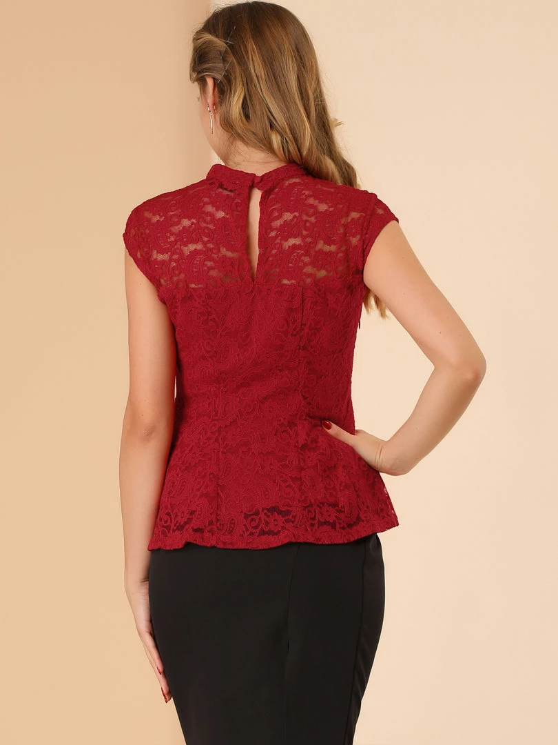 Allegra K Women’s Lace Floral Crochet Round Neck Sleeveless Blouse Peplum Top