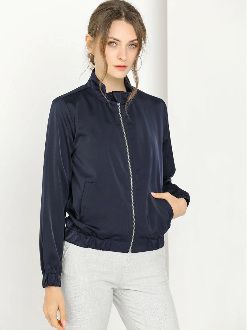 Allegra K Women’s Ligheweight Stand Collar Pockets Full Zip Jacket