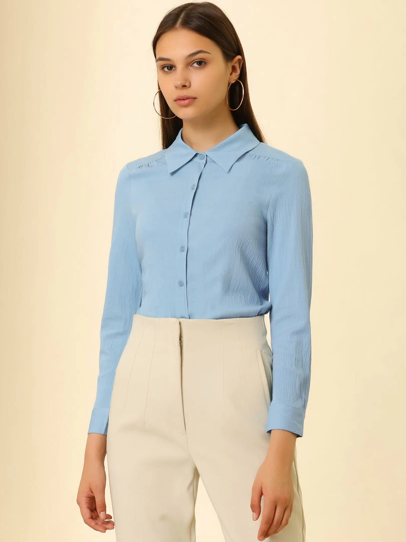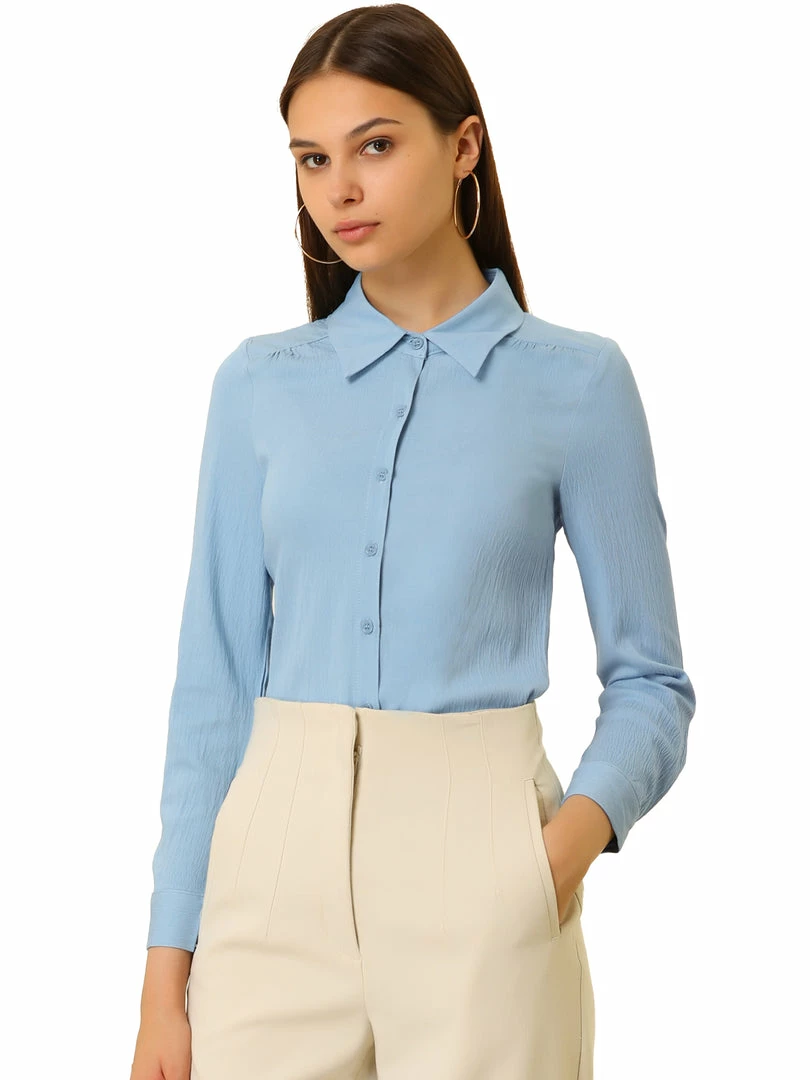 Allegra K Women’s Long Sleeve Collared Work Office Career Blouse Button Up Shirt