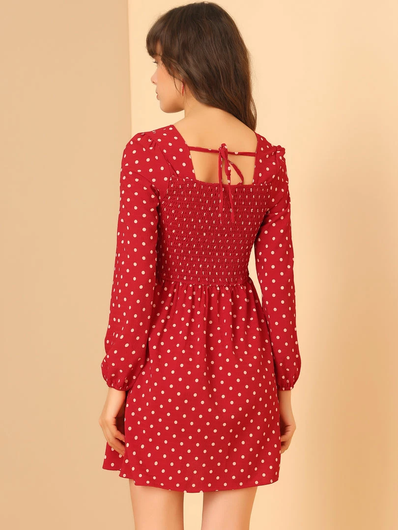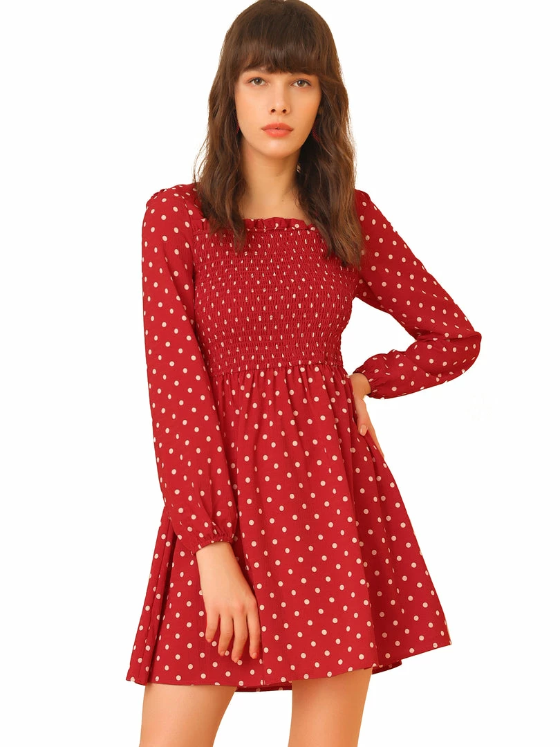 Allegra K Women’s Long Sleeve Dots Ruffle Dress