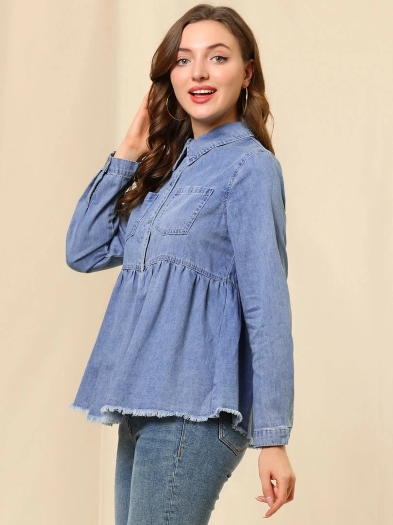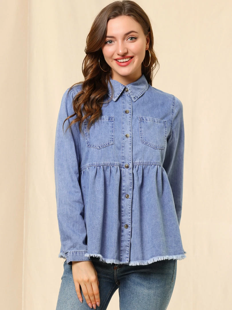 Allegra K Women’s Long Sleeve Peplum Button Down Denim Shirt