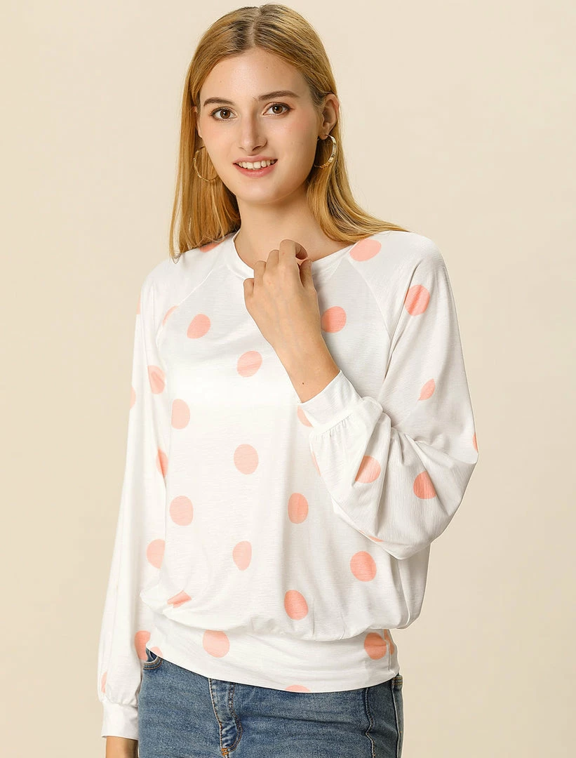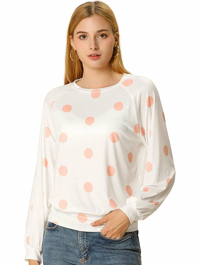 - It’s made from fairly soft fabric decorated with polka-dots and has lightly raglan sleeve to define the loose shape.