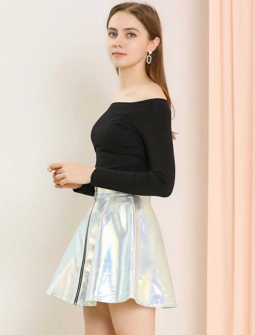 Allegra K Women’s Metallic Shiny Glitter Sparkly Zipper A-Line Holographic Full Skirts