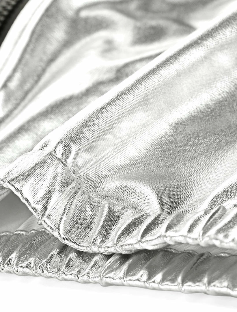 - Shinny and metallic fabric are unique and fashionable, wear this jacket to show your specific character and become the focus in the crowd.