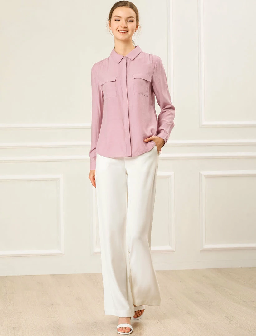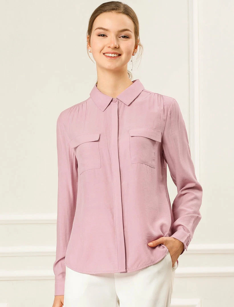 Allegra K Women’s Office Casual Long Sleeve Button Up Collared Shirt