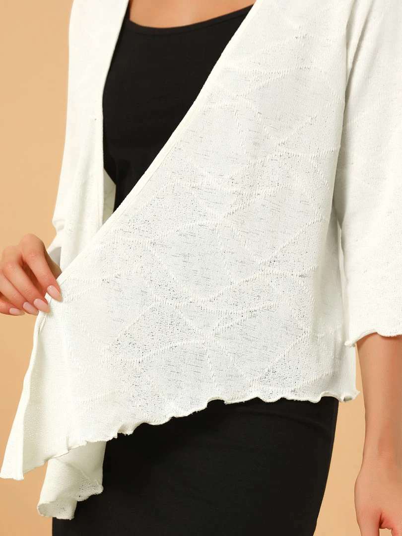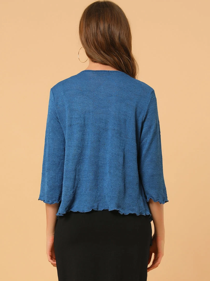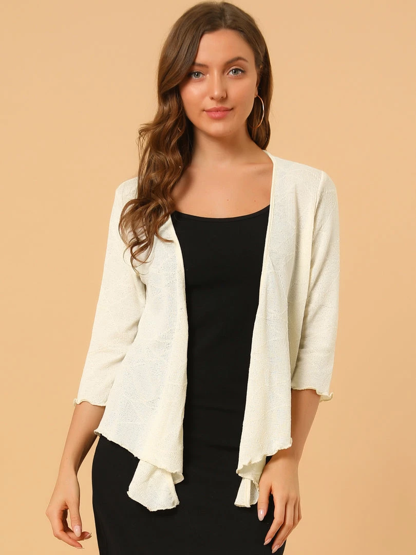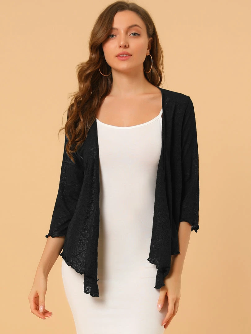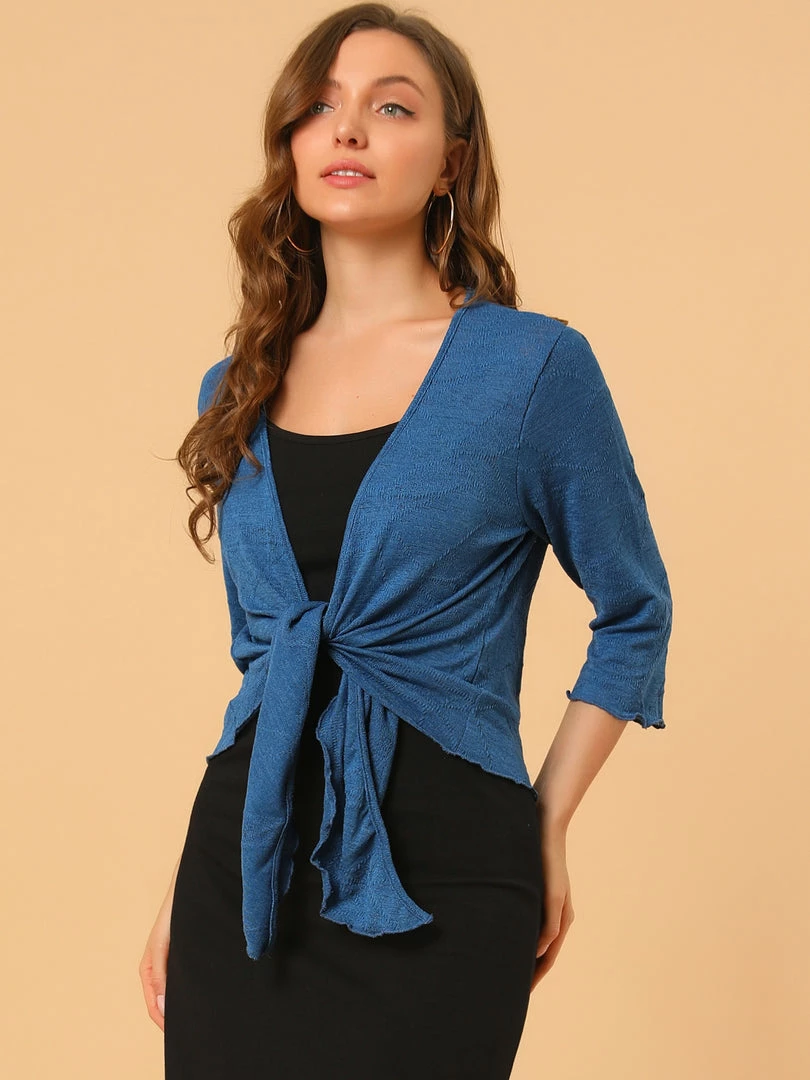 Allegra K Women’s Open Front Shrug Cardigans Self Tie Lightweight 3/4 Sleeve Cardigan