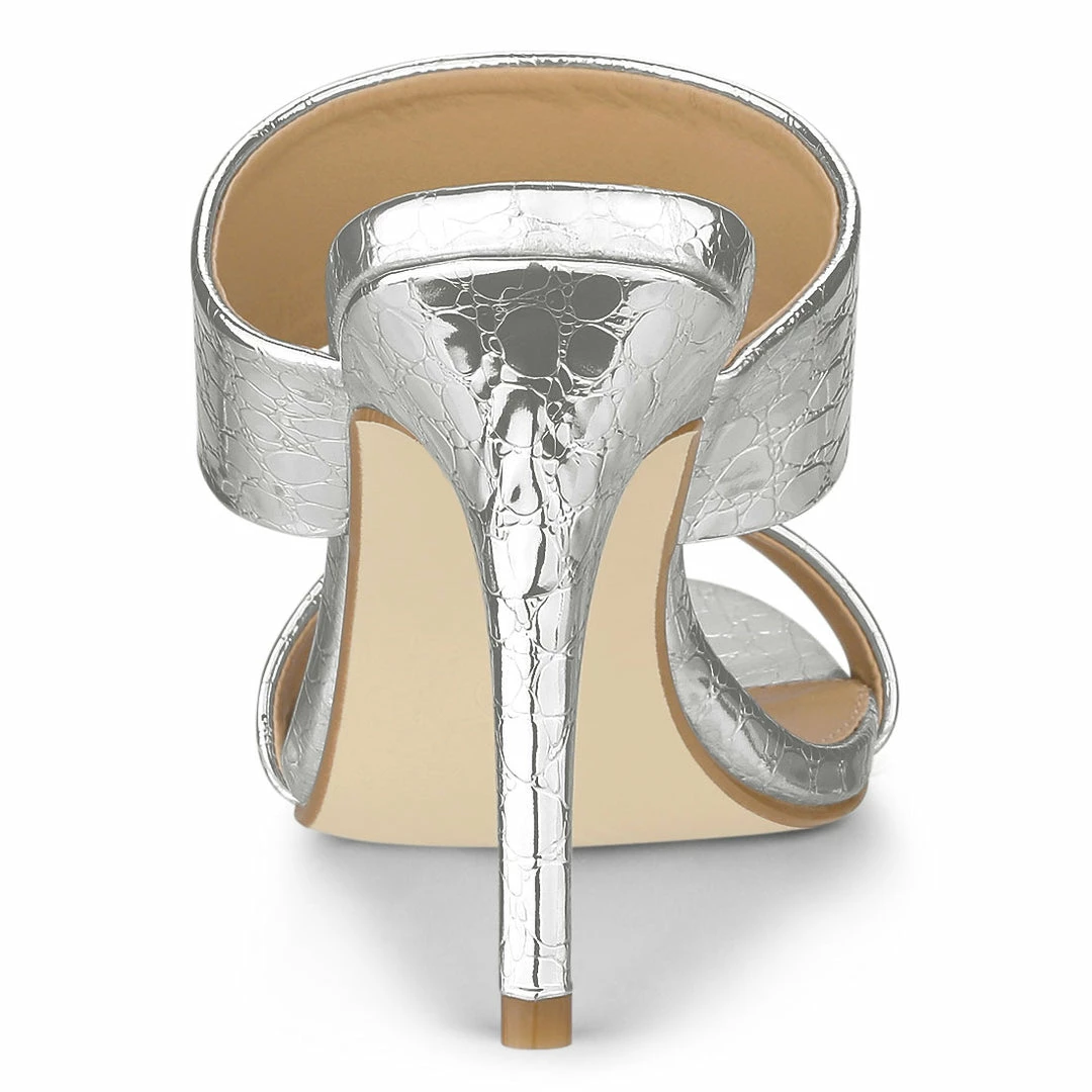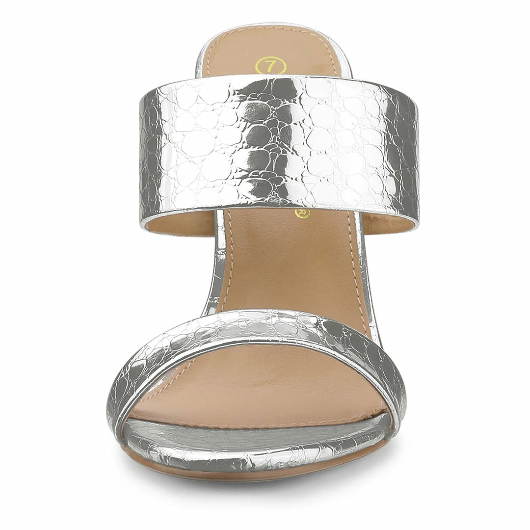 Versatile slides with a glossy finish. These Allegra K sandals are an easy two-band style that’s ready for any work-or-weekend look with a walkable, stiletto heel.
