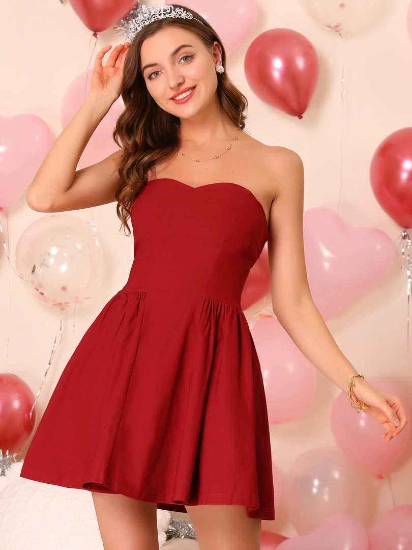 Allegra K Women’s Party Mini Strapless Sweetheart Neck Sexy Christmas Tube Top Dress