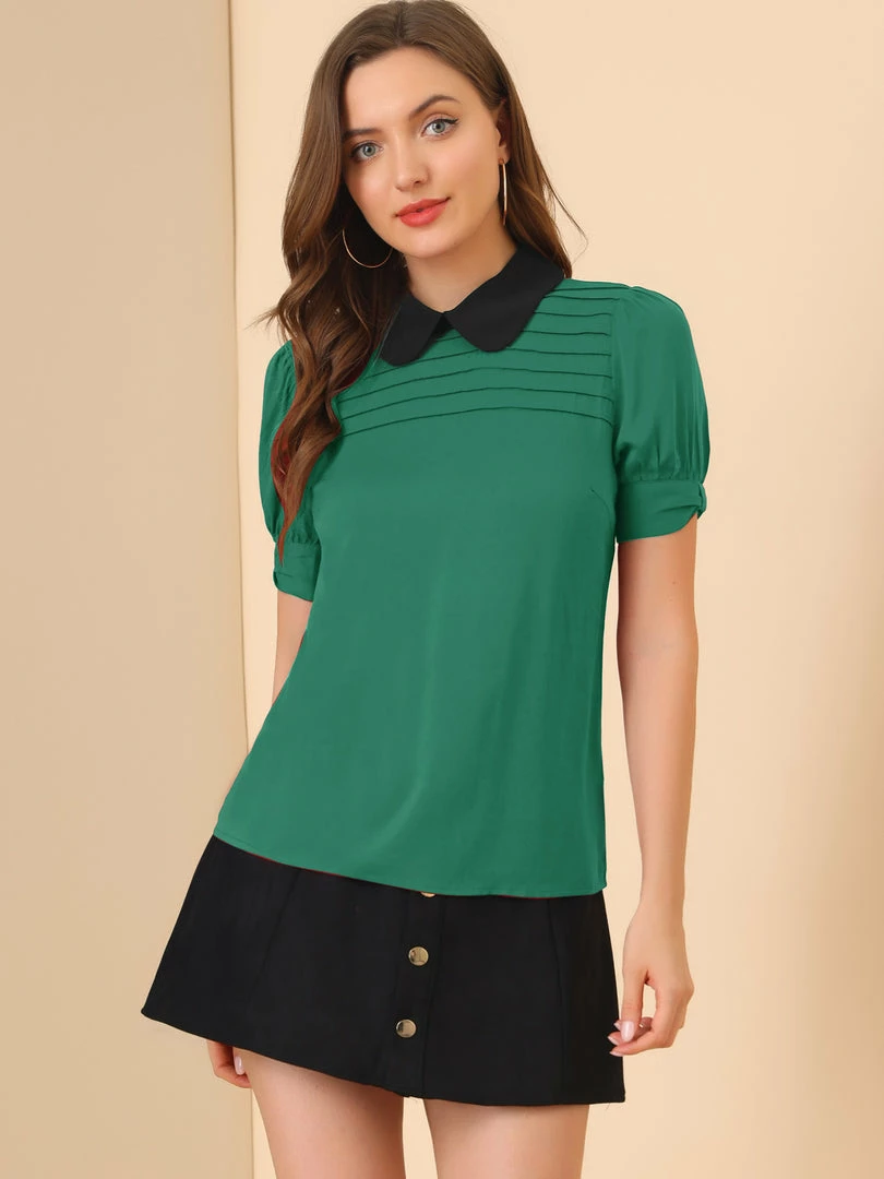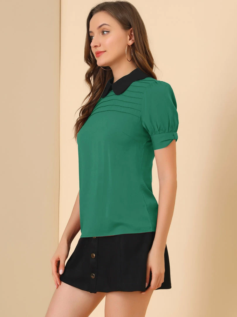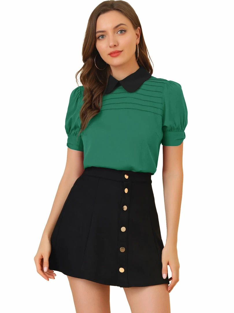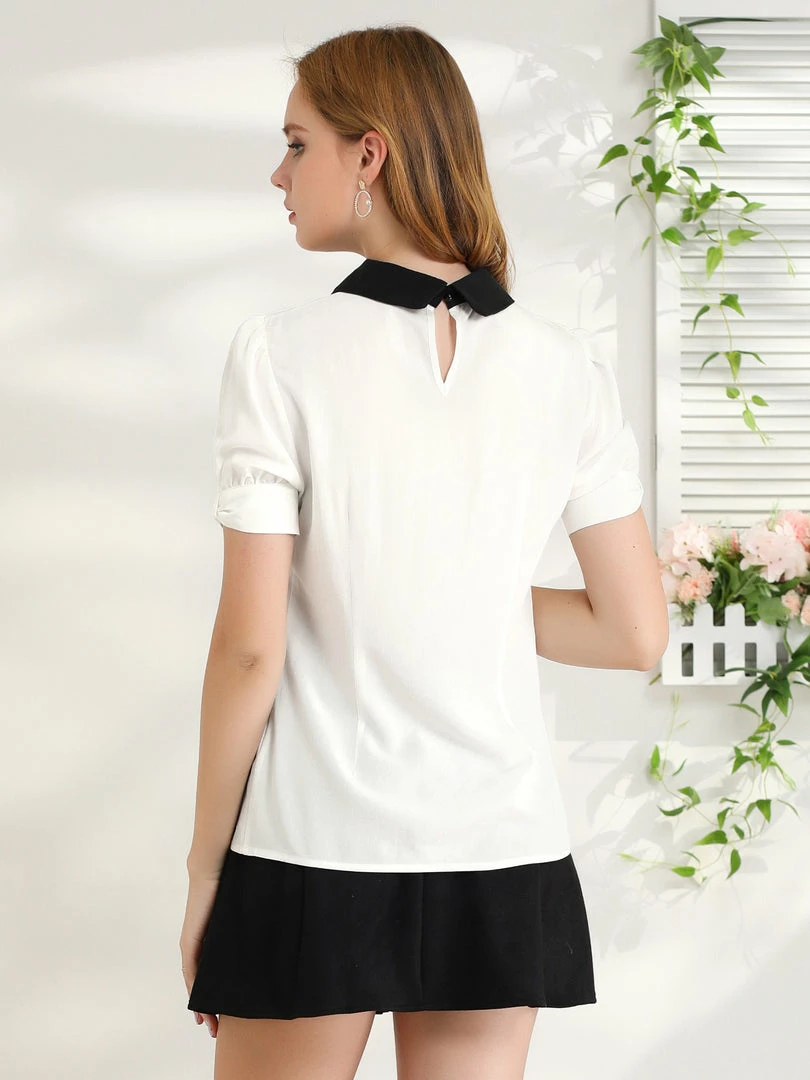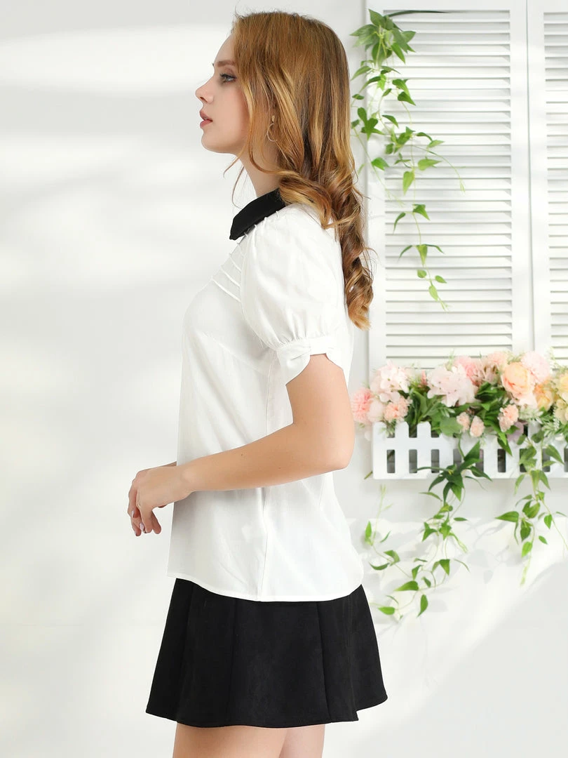 Allegra K Women’s Peter Pan Collar Contrast Puff Short Sleeve Casual Blouse Top