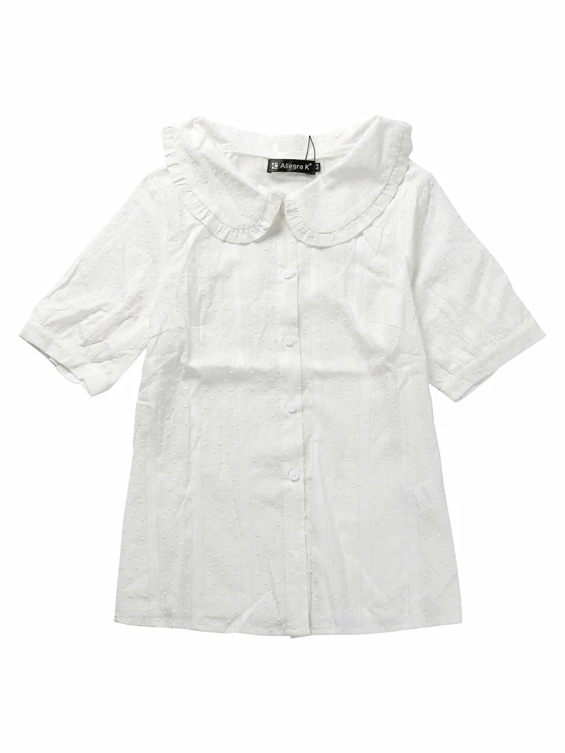 Allegra K Women’s Peter Pan Collar Swiss Dots Short Sleeves Button Front Shirt Blouse