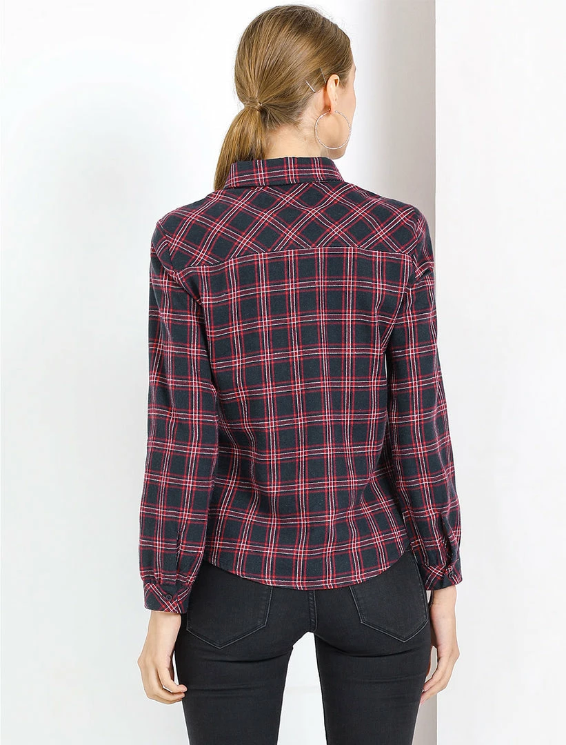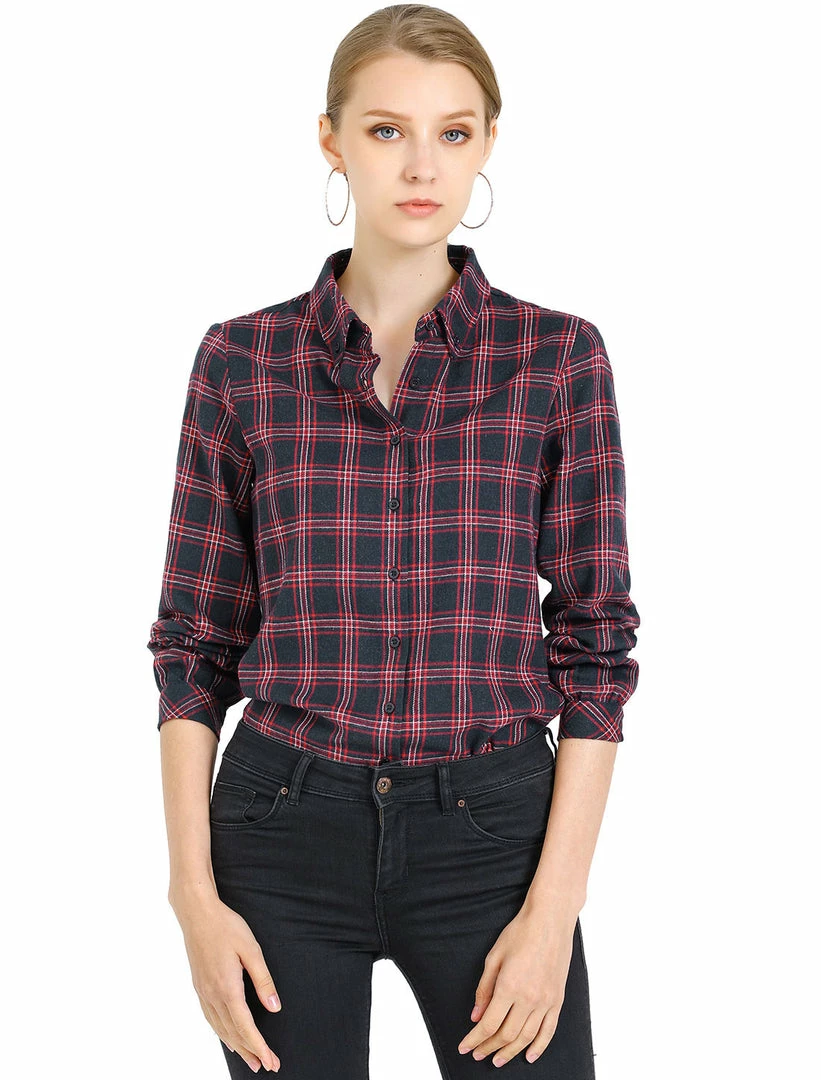 Allegra K Women’s Plaid Button Down Turndown Collar Relaxed Long Sleeve Shirt