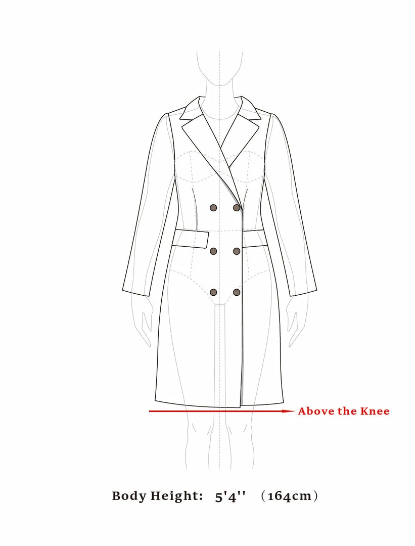 • Big lapel design adds more charming details to your appearance; Long length is classic and retro but will never outdated; The side-entry pockets is convenient and keep you warm; Above knee length, make you look slimmer, taller and sexy.