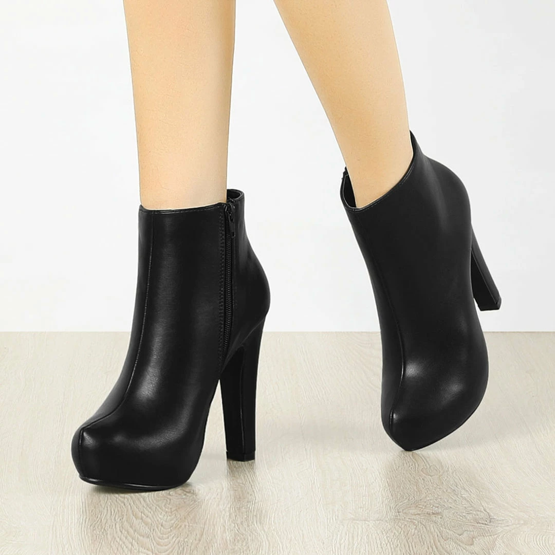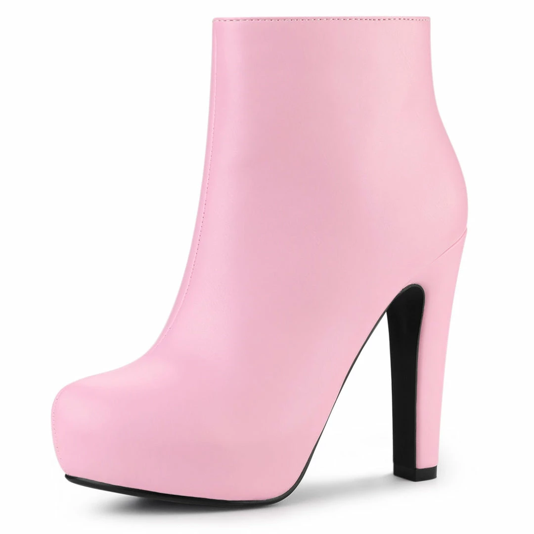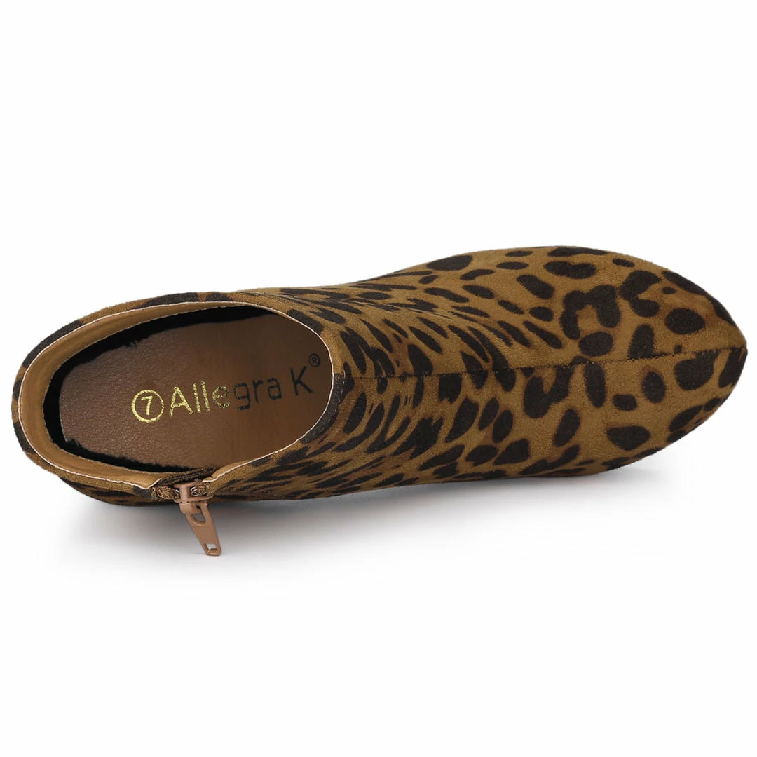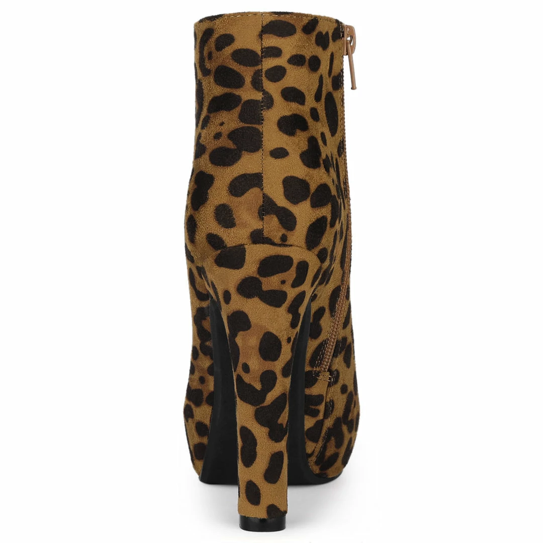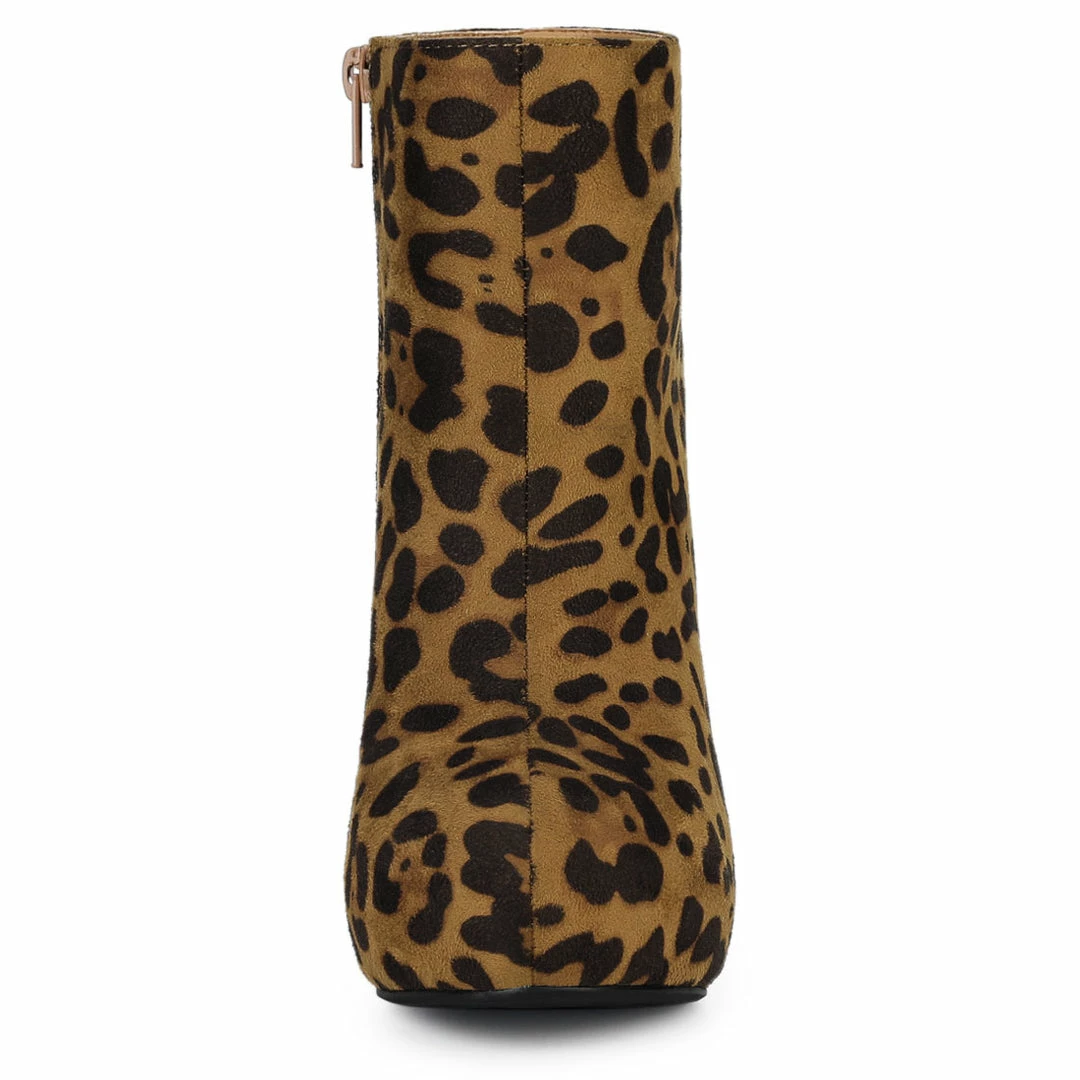 These ankle heel boots in suede, faux leather with Black, pink color and leopard, covered heel and non slip outsole. The classic design of the block heel lends a timeless from to these vivier boots.